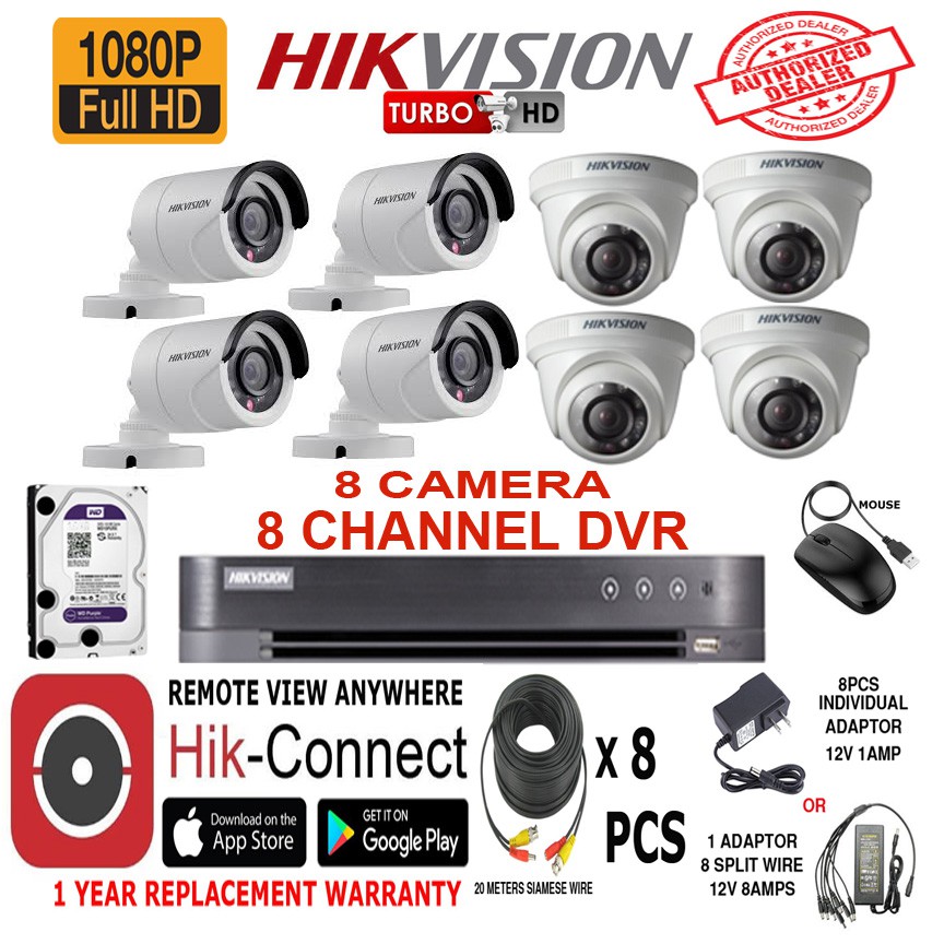 Hikvision 2MP 8 Camera 8 Channel DVR 8TB HDD Package