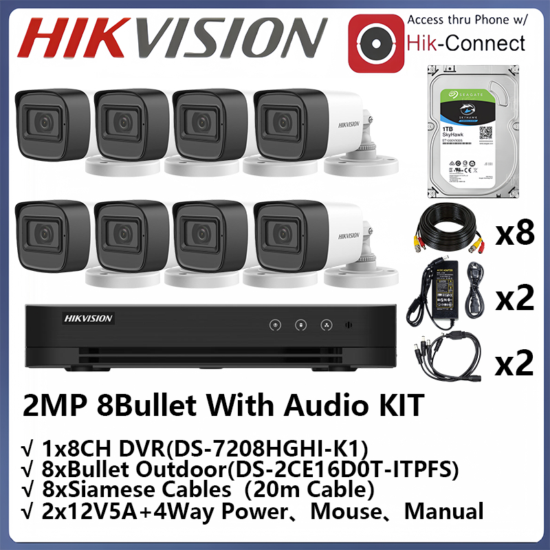 Hikvision 2MP All Bullet CCTV Package 4CH/8CH DVR Support Remote Viewing CCTV Analog Camera Kit