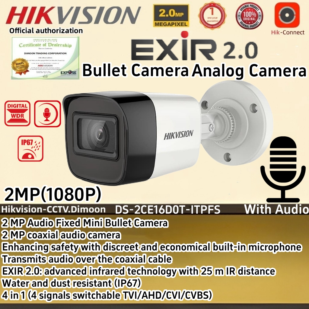 Hikvision 2MP HD IR High quality Bullet CCTV Camera With audio Outdoor Wired Analog Camera