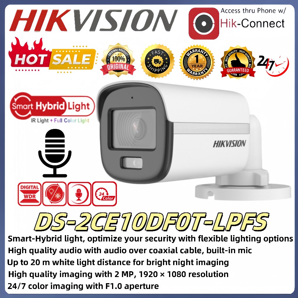 Hikvision 3K Outdoor Analog Camera ColorVu Smart hybrid light Fixed Turret With Audio Camera