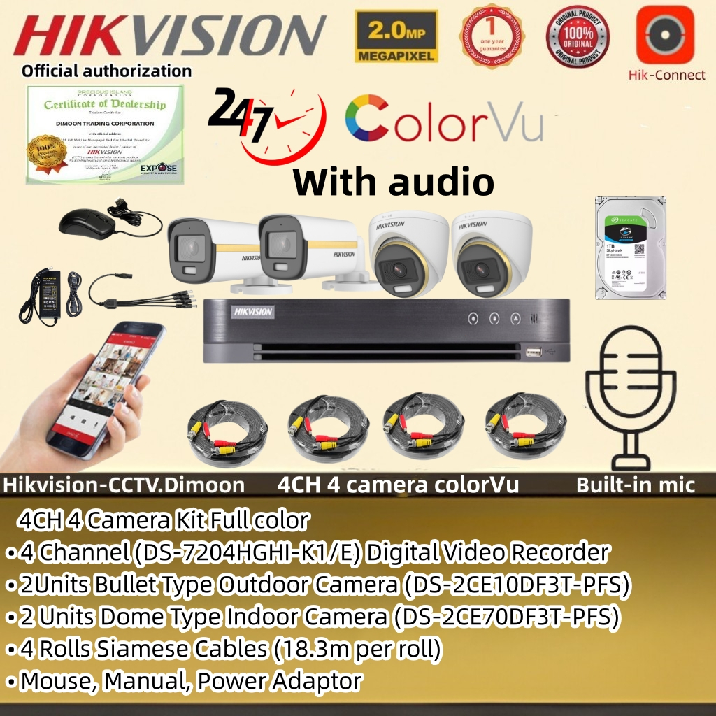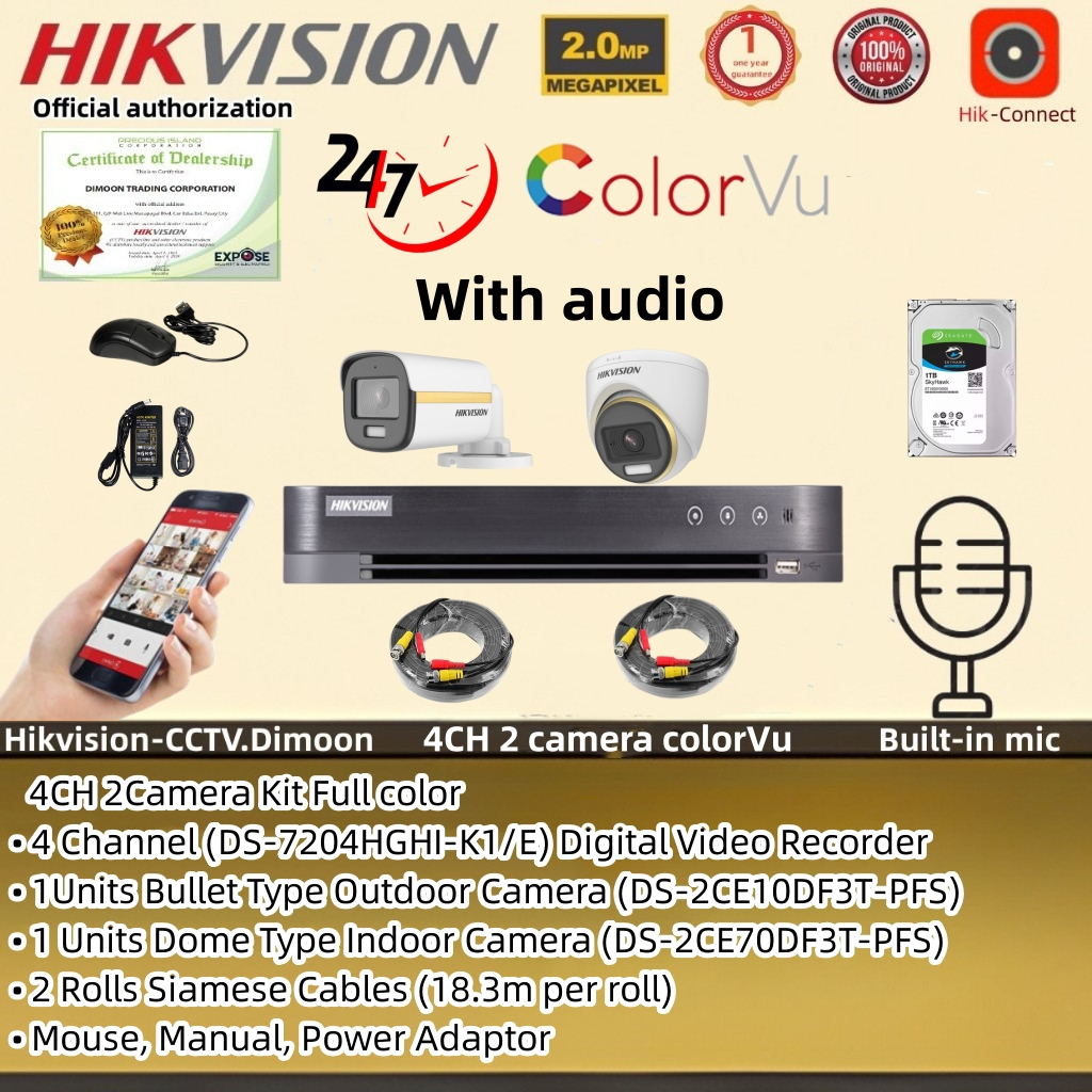 Hikvision 4/8CH CCTV Kit 2MP Full-color With audio CCTV package Complete CCTV With Remote monitoring