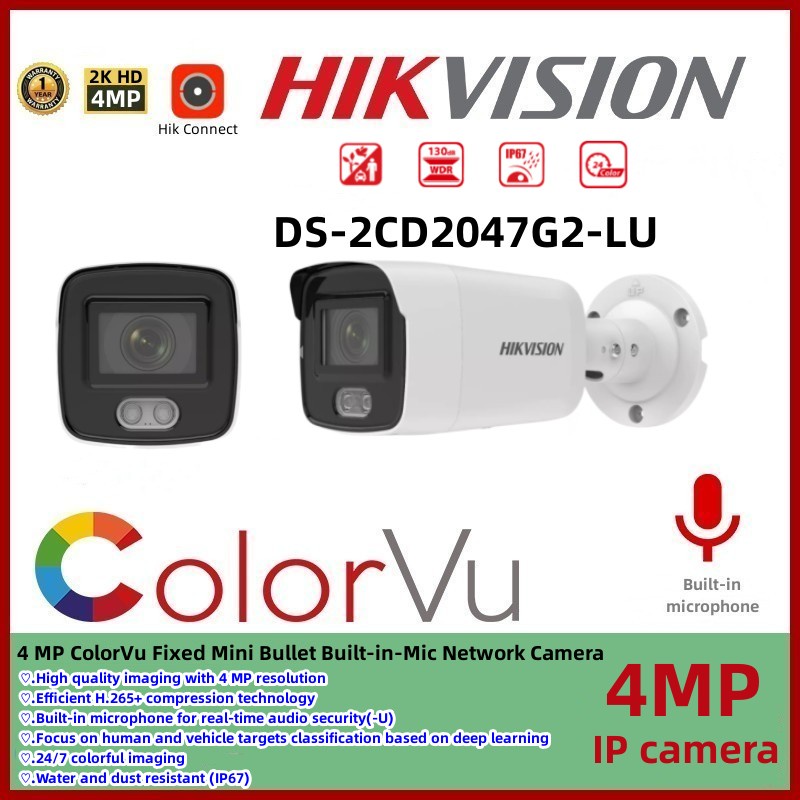 Hikvision 4 MP ColorVu Fixed Mini Bullet Built-in-Mic Network Camera Outdoor waterproof IP camera
