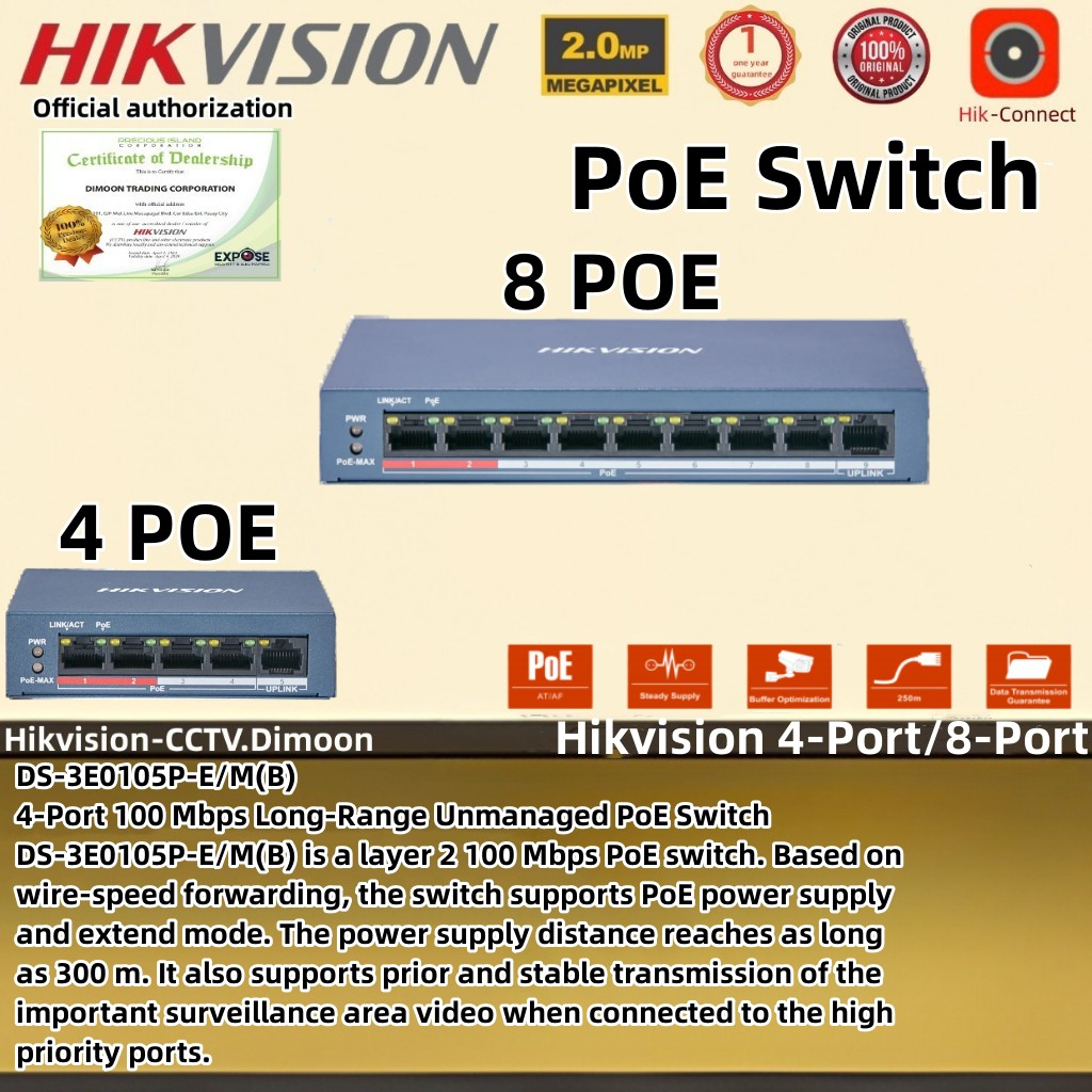 Hikvision 4-Port/8-Port PoE switch 100Mbps Gigabit Unmanaged POE Switch IP camera RJ45 Port