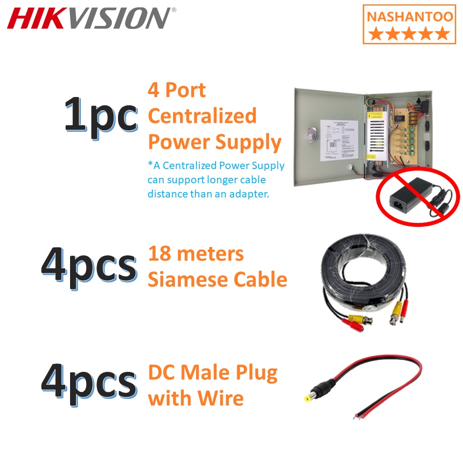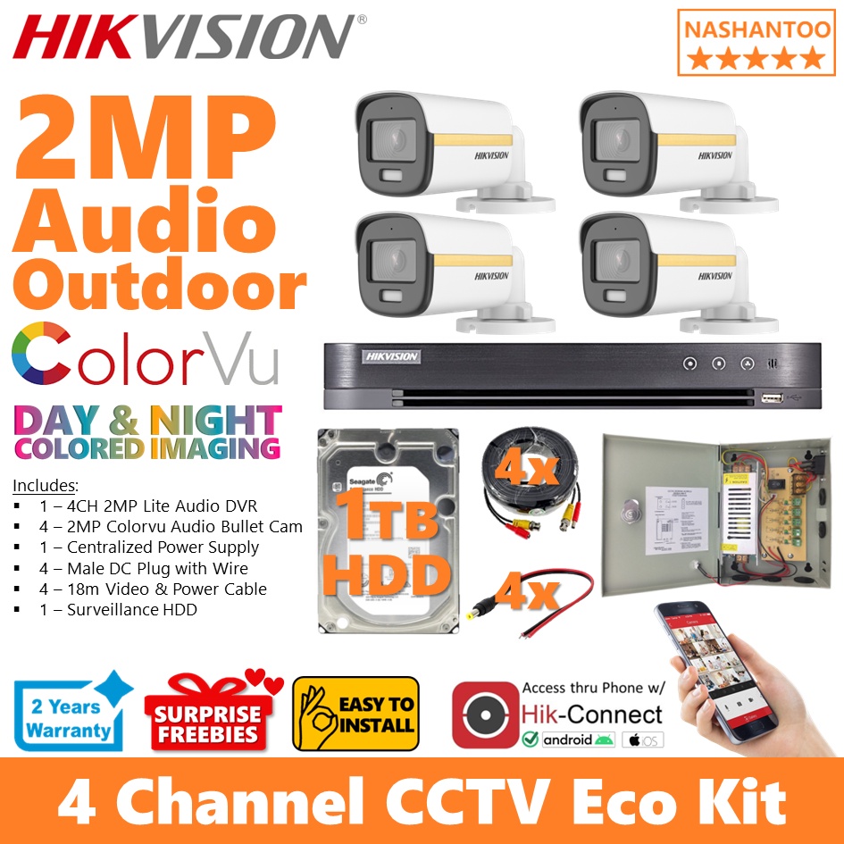 Hikvision 4CH 2MP Colorvu Audio 4Cameras DIY CCTV ECO Kit 4/4CRA2 ECO-CPS+CABLE(4B)