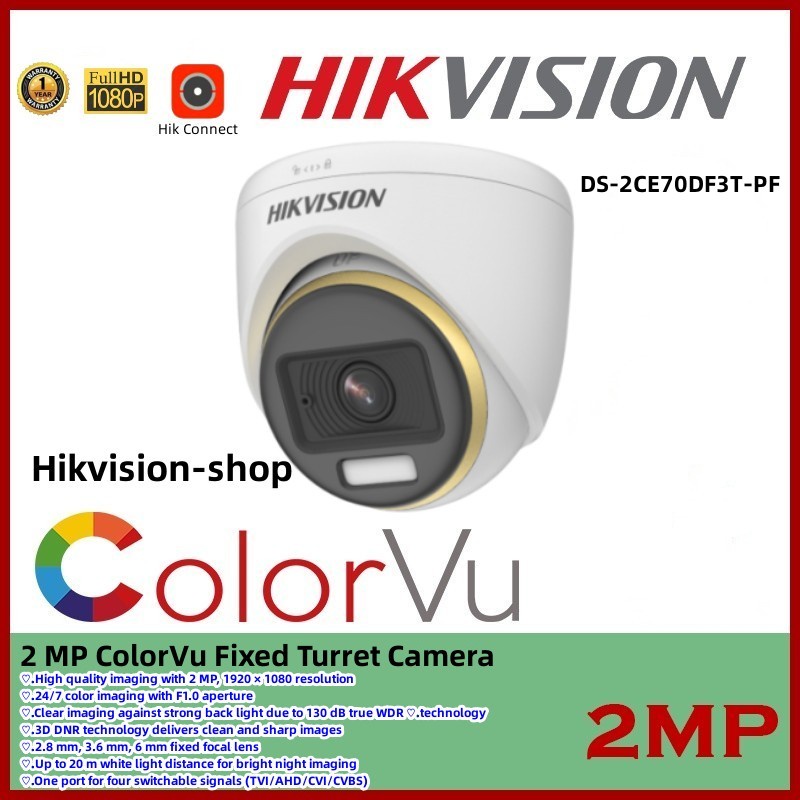 Hikvision CCTV Camera 2MP HD Full-color Built-in mic Smart IR High quality Turret Analog Camera