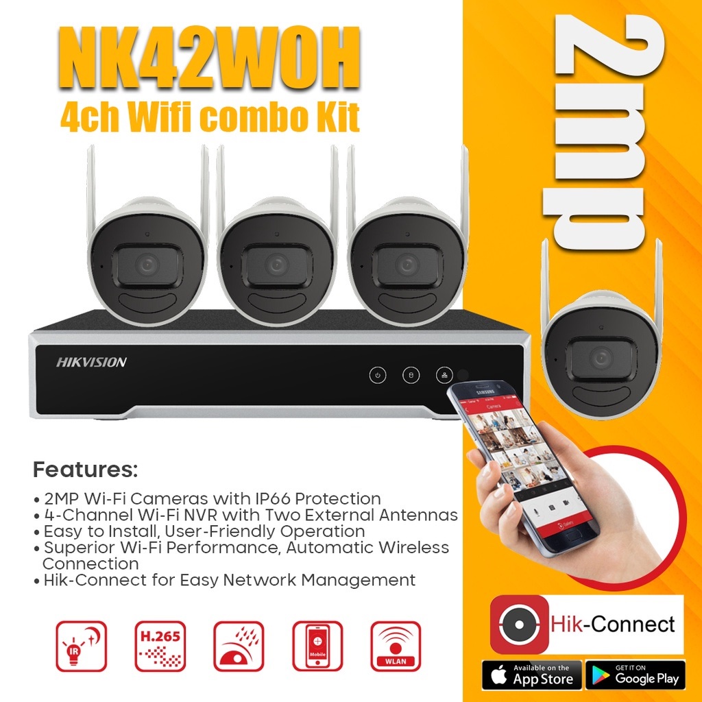 Hikvision CCTV Camera WIFI Kit 4 CH CCTV Kit 1080p HD H.265 Bullet Camera DVR Complete CCTV Package