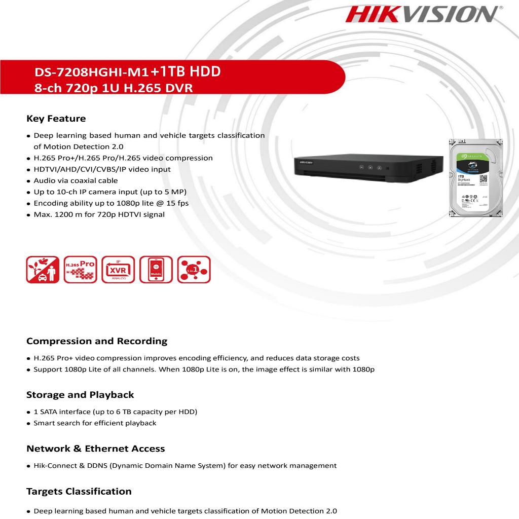 Hikvision CCTV DVR 4/8/16 CH 1080P Face Detection H.265 Motion Detect Video Recorder For CCTV Camera