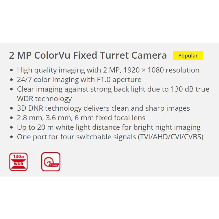 Hikvision Colorvu Dome DS-2CE70DF3T-PF 2MP 24/7 All Time Colored Dome Analog