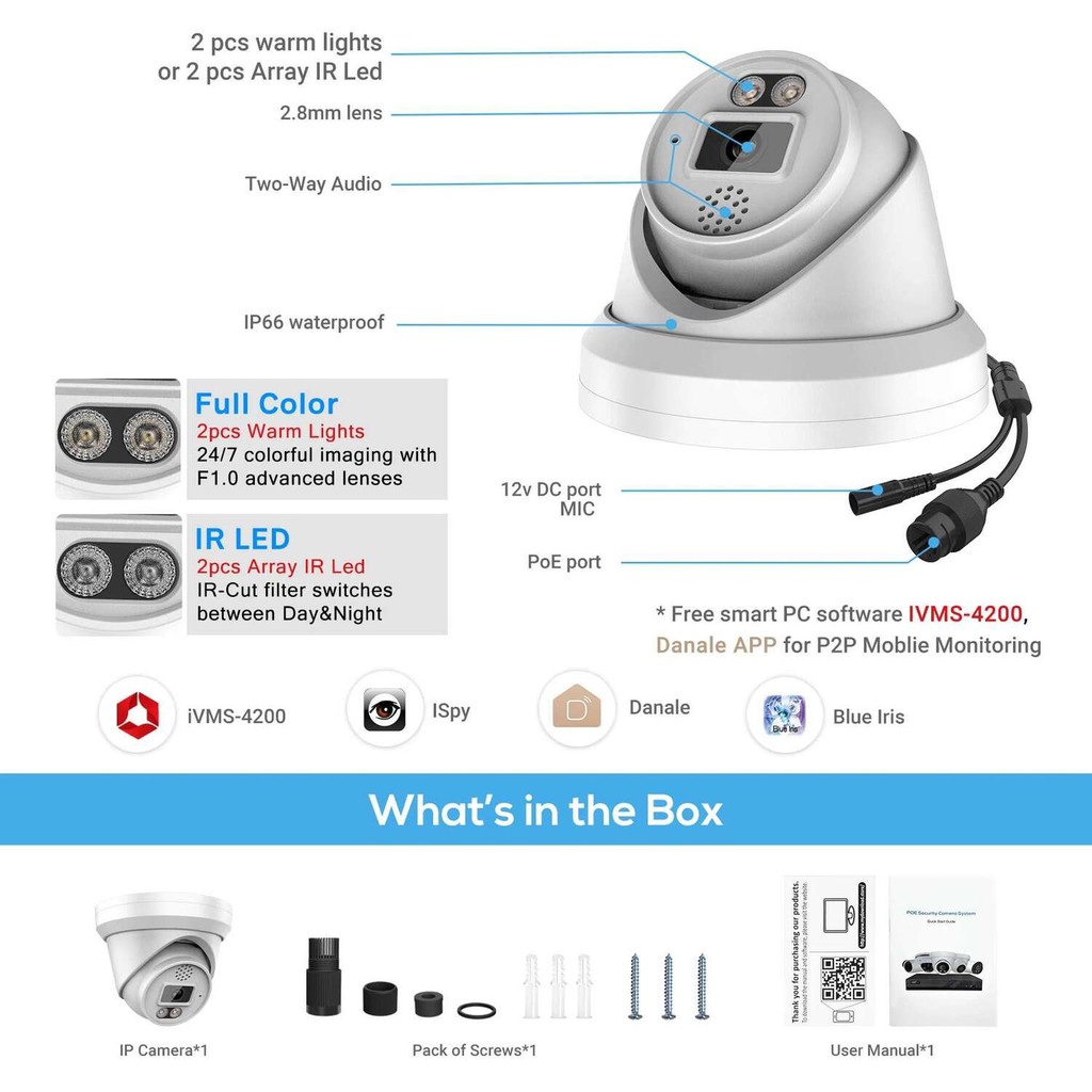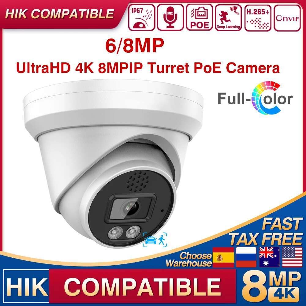 Hikvision Compatible 4K 6/8MP IP Turret PoE Camera Human Vehicle Detection Built-in Mic Speaker HI