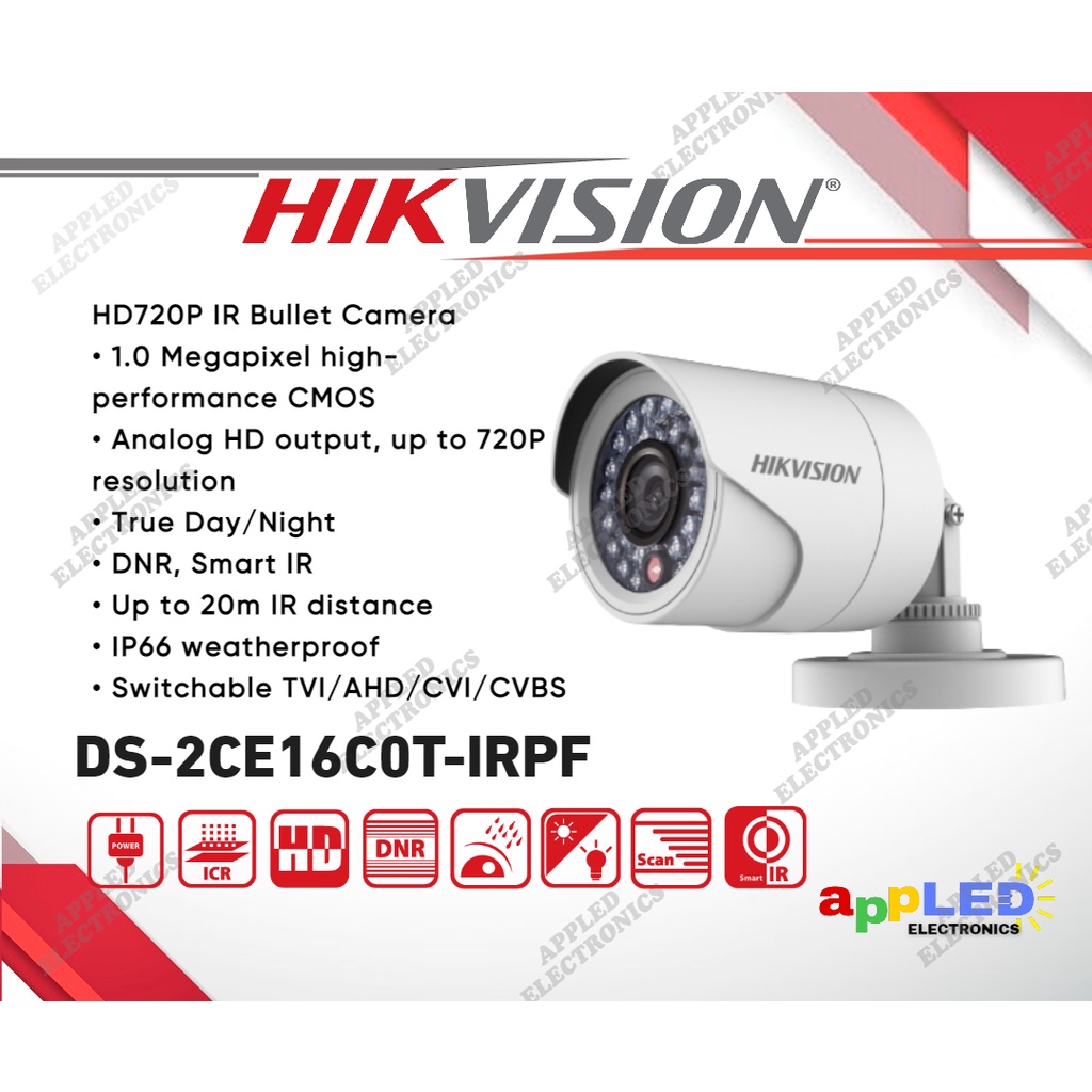 Hikvision DS-2CE16C0T-IRPF 1MP 720P Bullet Analog Infrared CCTV Camera