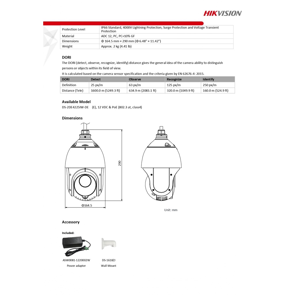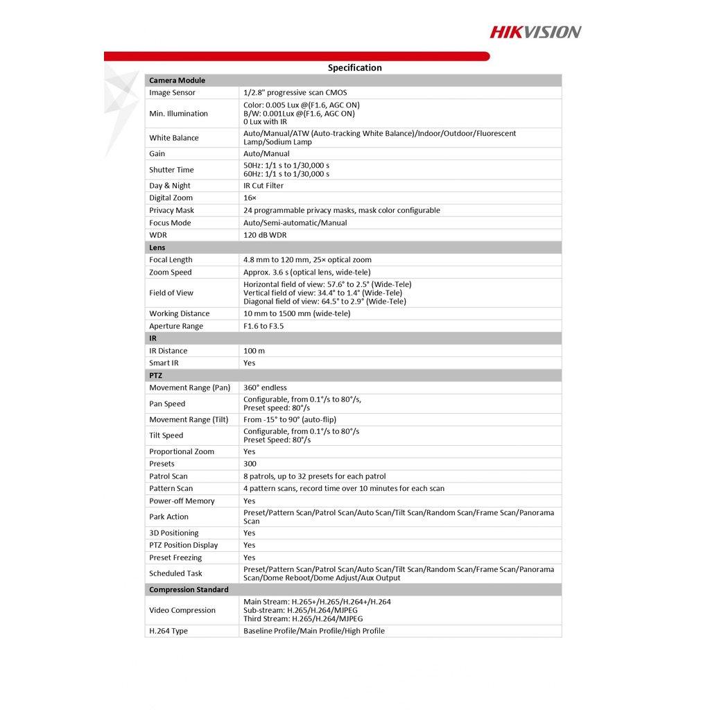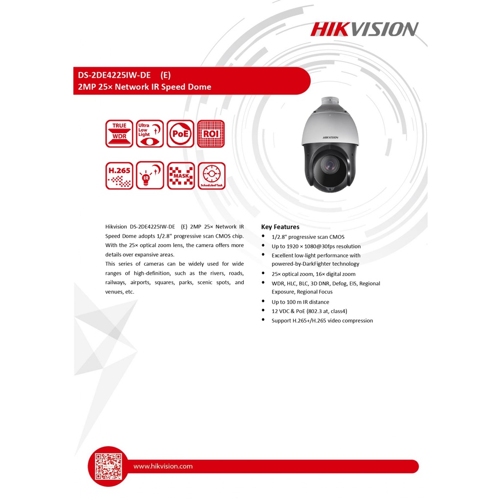 Hikvision DS-2DE4225IW-DE 2MP 25x Zoom Outdoor PTZ PoE Network IR Network IP Speed Dome Camera