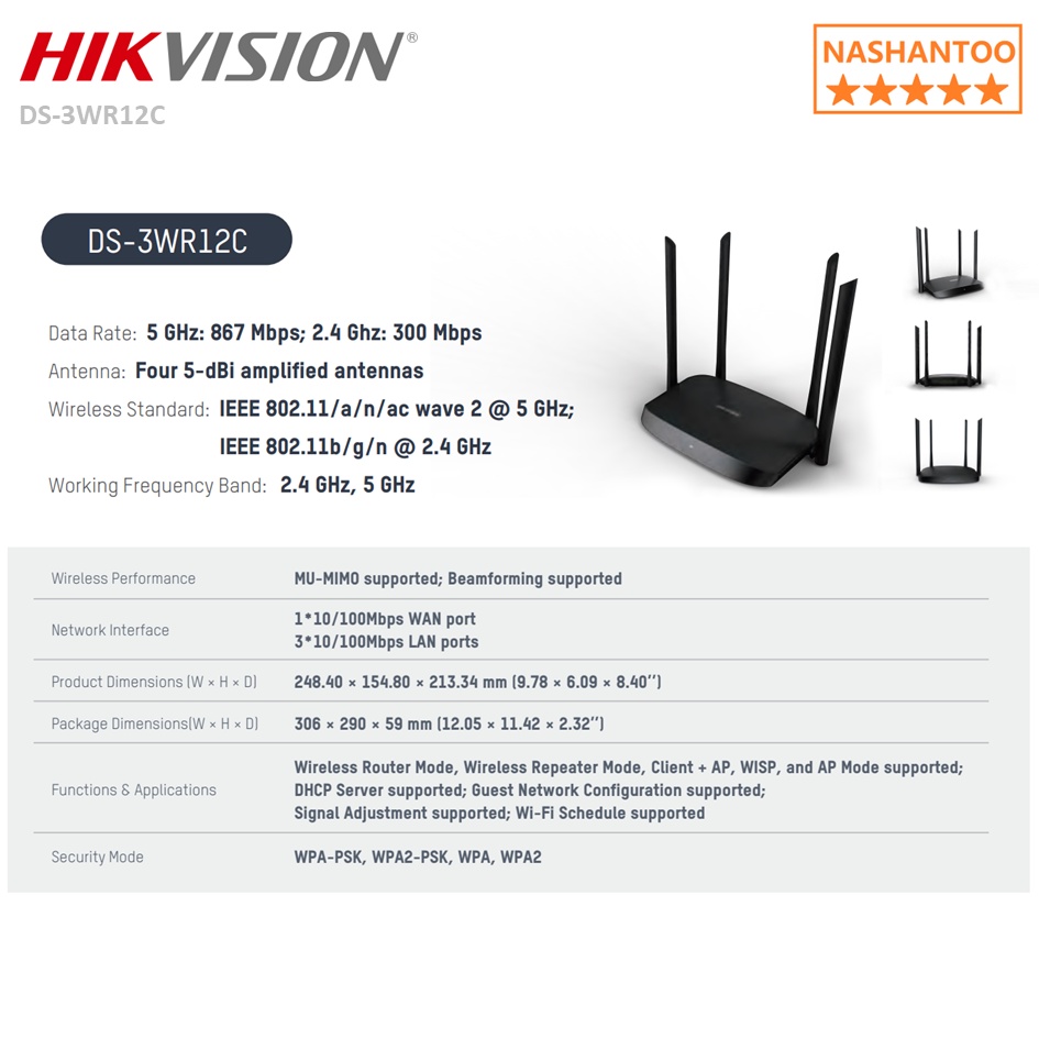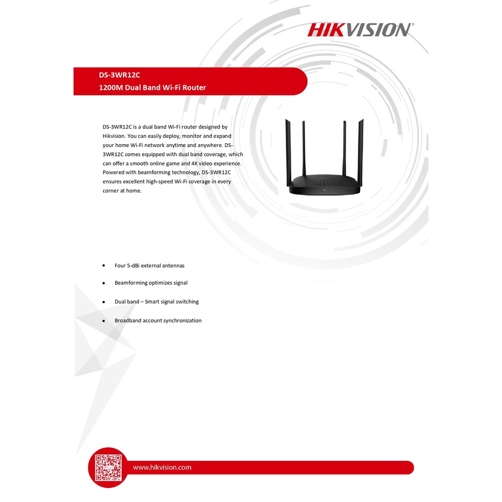 Hikvision DS-3WR12C AC1200 Dual-band 1200Mbps Wi-Fi Wireless MU-MIMO Router/Repeater/Access Point
