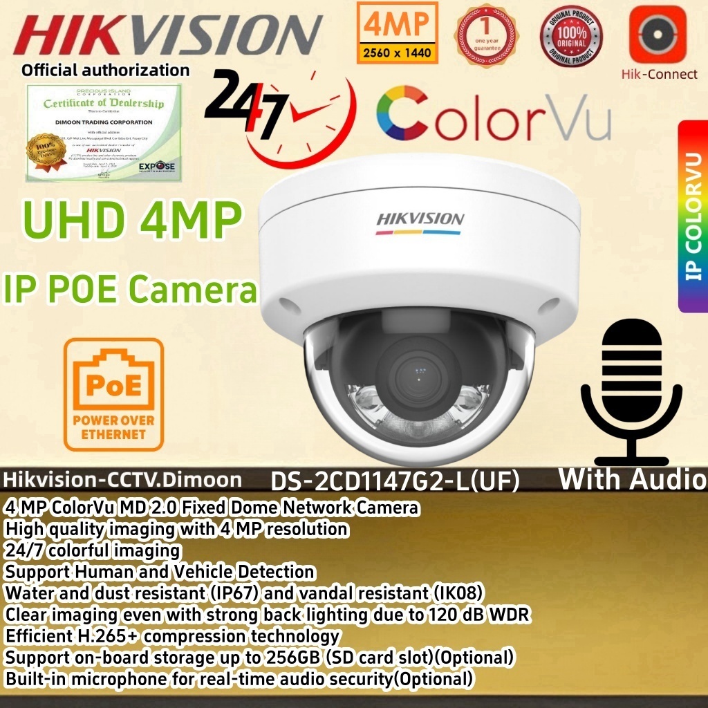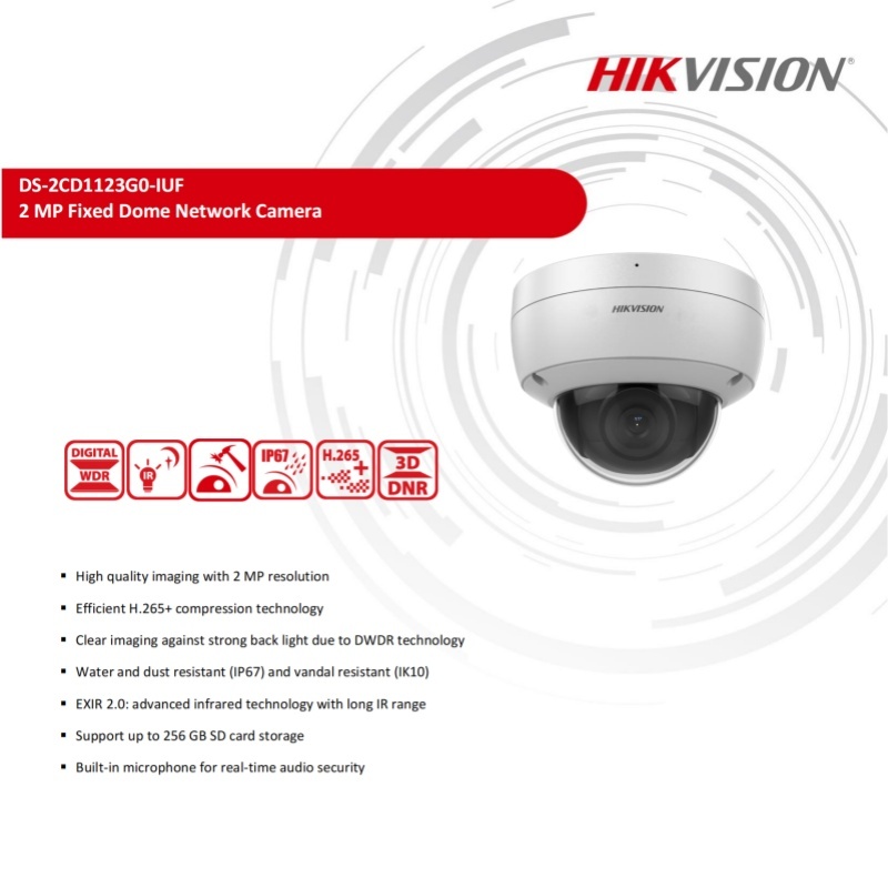 Hikvision IP Camera 2MP/4MP Fixed Dome Network Camera Water and dust resistant IP67 IK10 POE camera