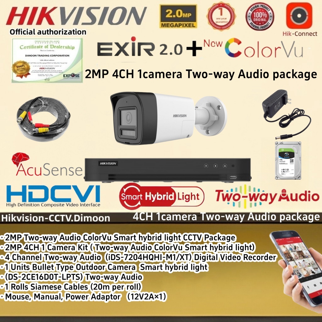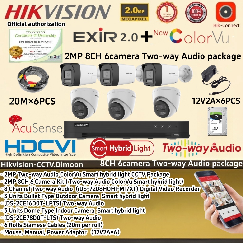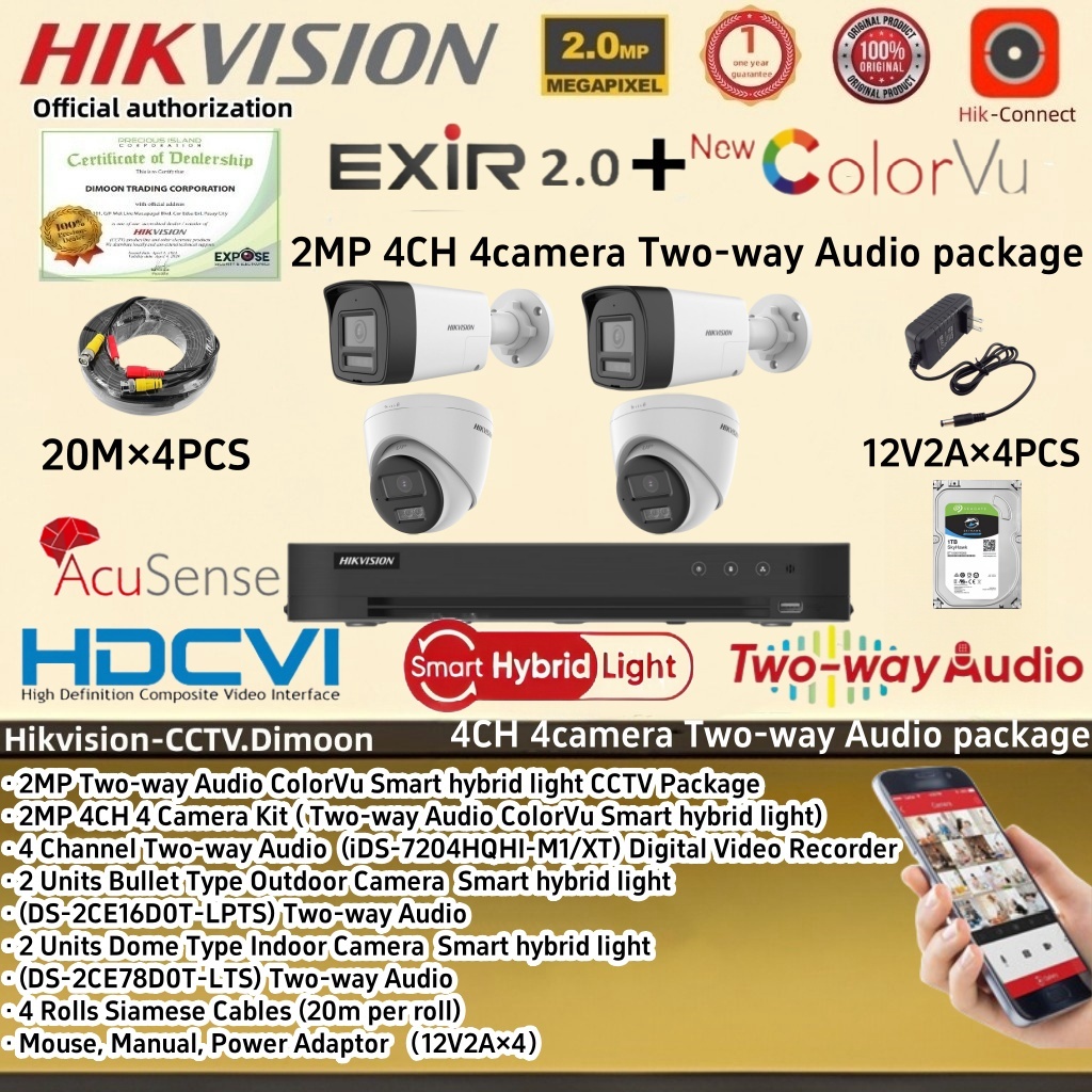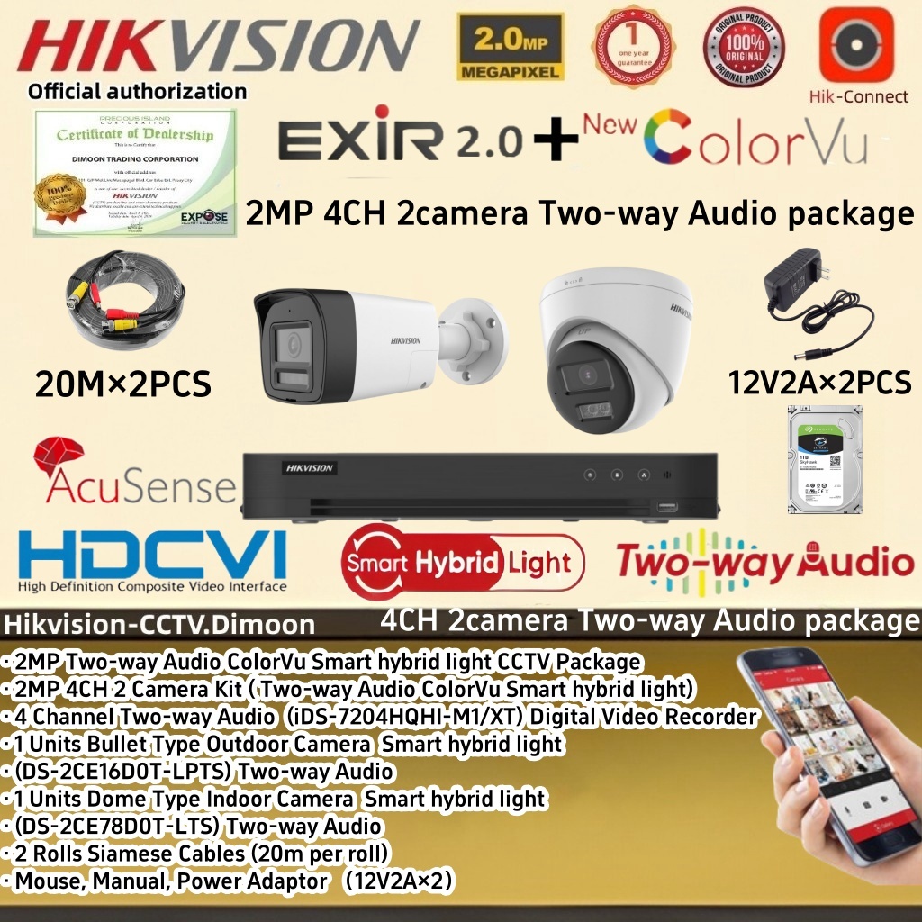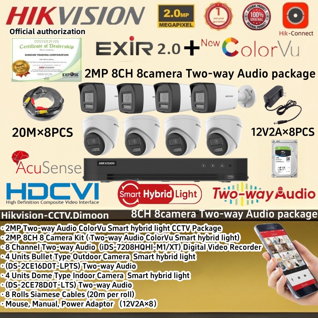 Hikvision Two-way Audio CCTV package 4CH 8CH 2MP ColorVu Smart hybrid light Camera KIT CCTV Set