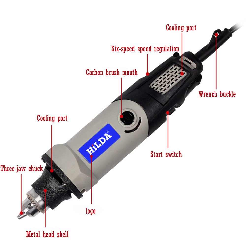 Hilda 400W Electric Drill Dremel Grinder Engraver Pen High Power Rotary Tools Handheld Grinding Machine For Milling Engraving Carving power tools