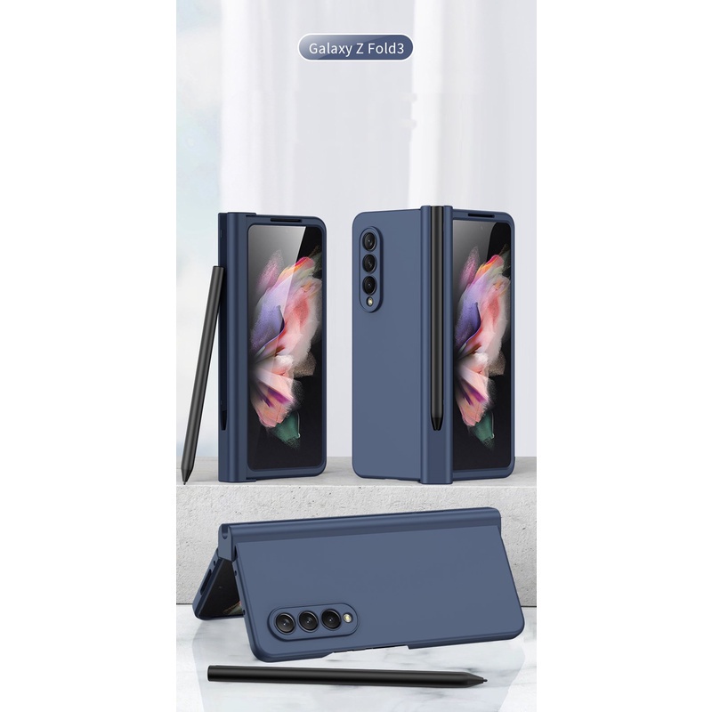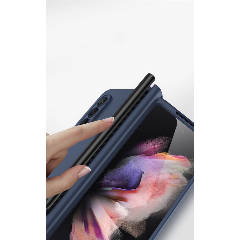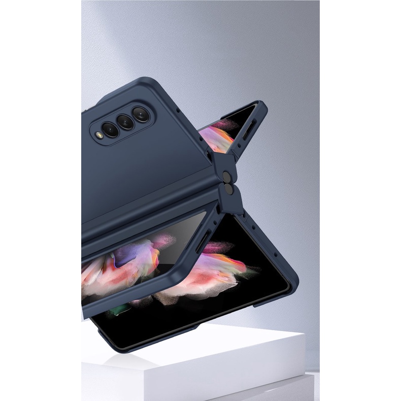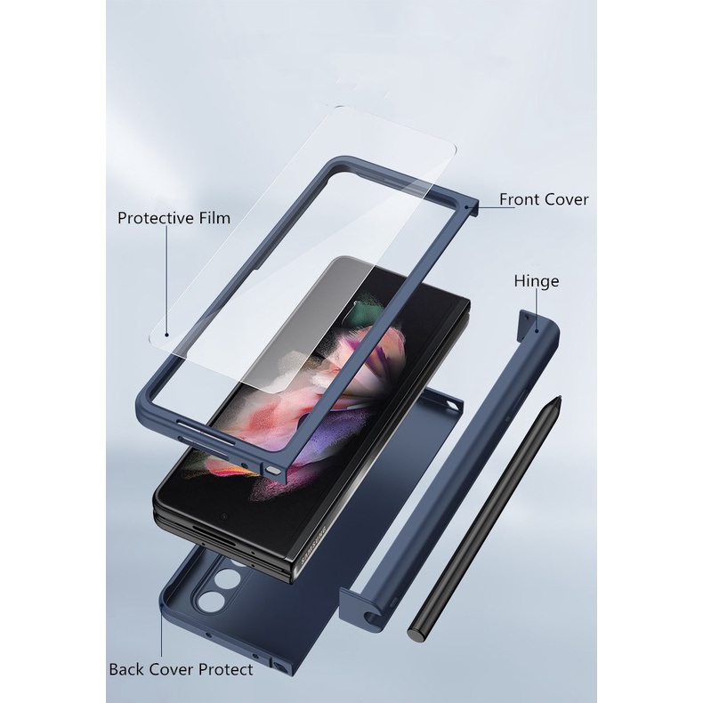 Hinge PC Silicone 360-degree Full Body Case For Samsung Galaxy Z Fold 3 5G Z Fold 4 5G with Front Screen Glass Folding Armor Cover