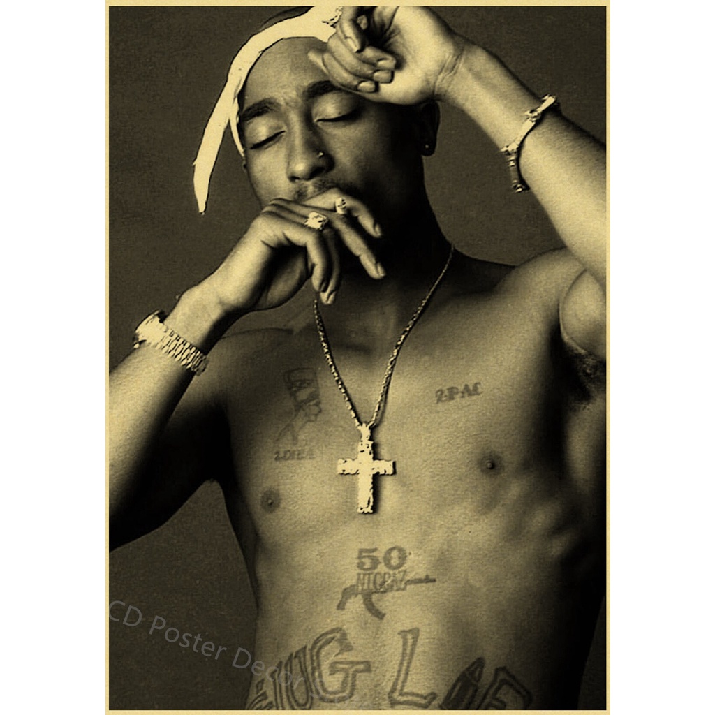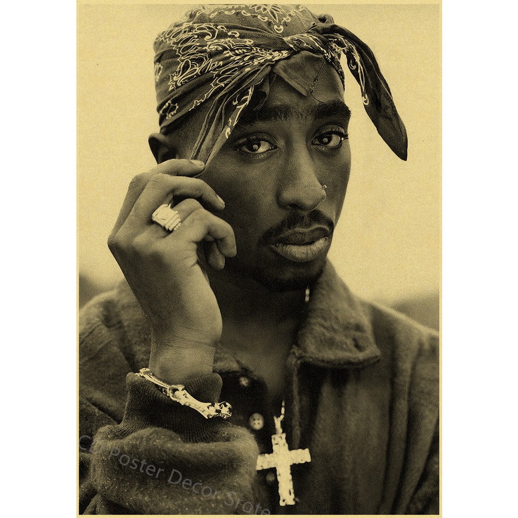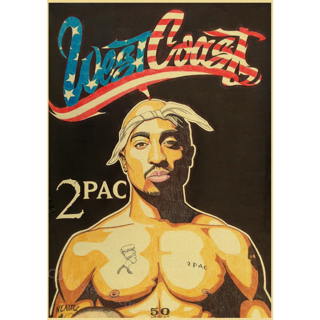 Hip Hop Singer Tupac Retro Poster Kraft Paper 2PAC Prints Posters Vintage Home Room Bar Cafe Decor Aesthetic Art Wall Paintings