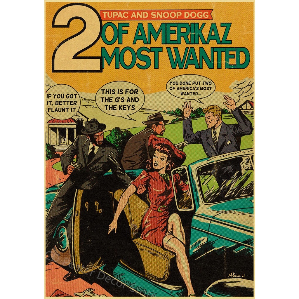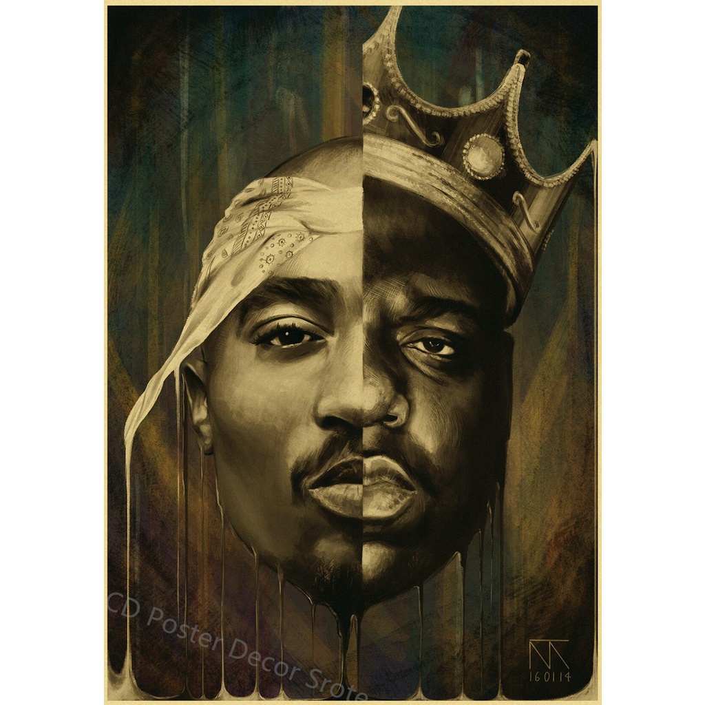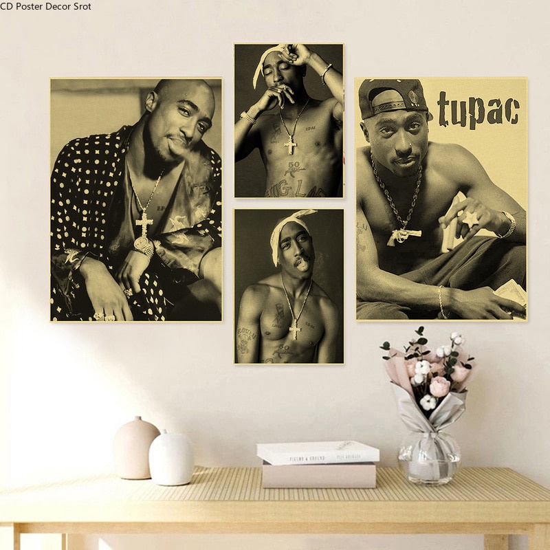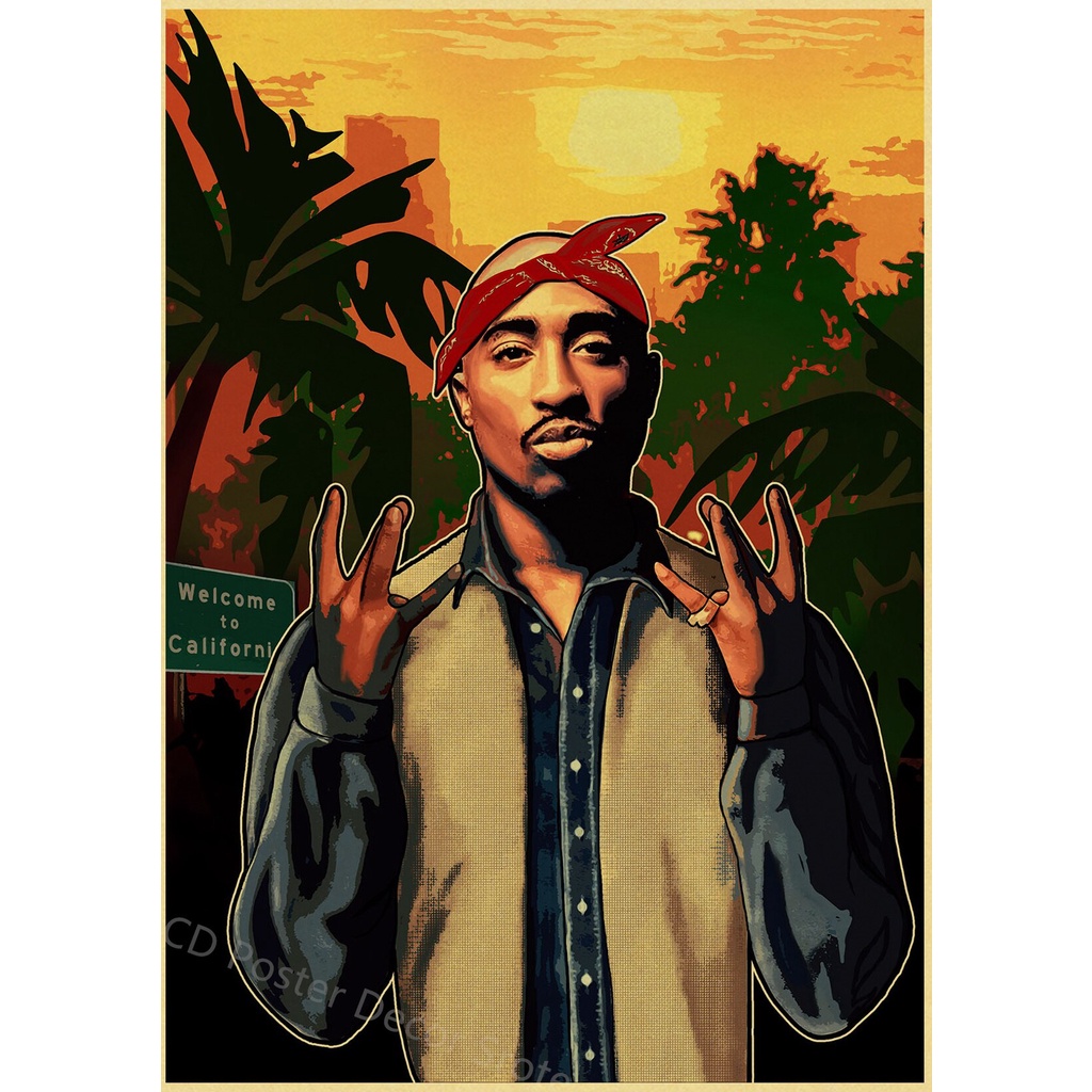 Hip Hop Singer Tupac Retro Poster Kraft Paper 2PAC Prints Posters Vintage Home Room Bar Cafe Decor Aesthetic Art Wall Paintings