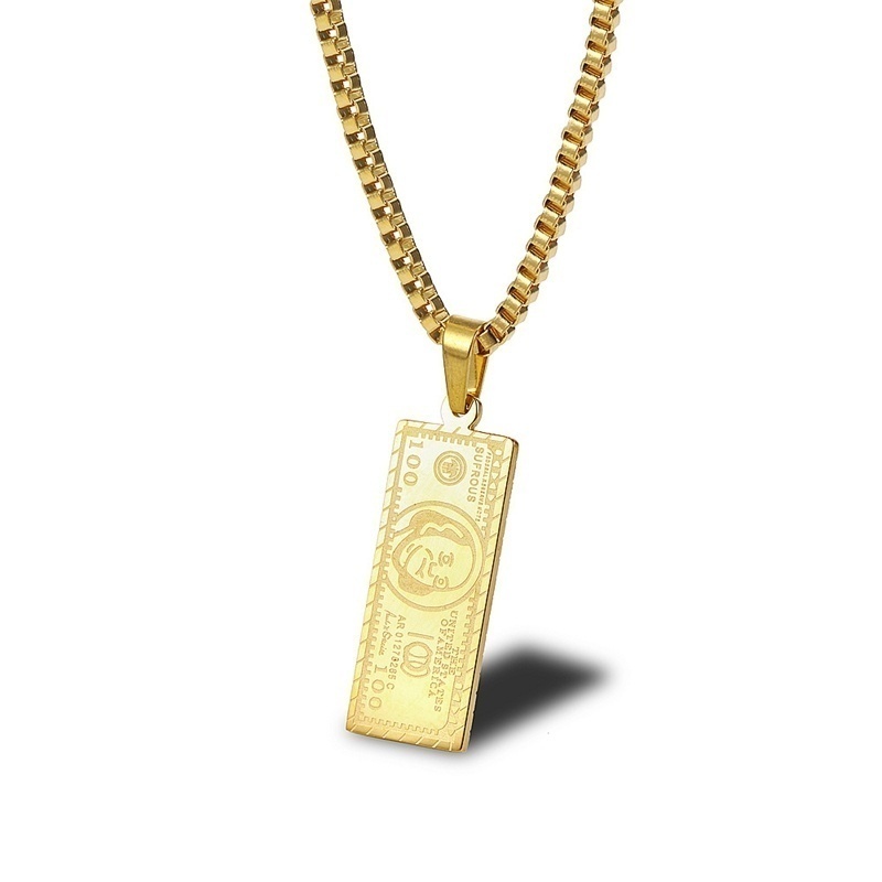 Hip Hop Street Golden Chain Men's 1 Million Dollar Bill One Million Dollar Banknote Necklace Pendant