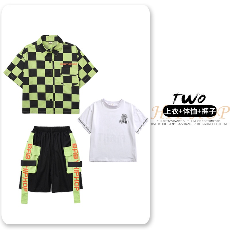 Hip-hop Clothes Plaid Top Shirt Suit Street Dance Costume Performance Costume Top+Shorts Cheerleading Costume Dance Costume