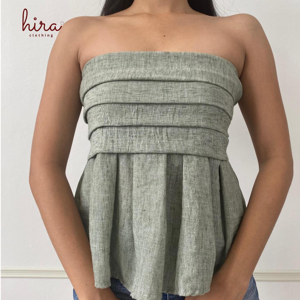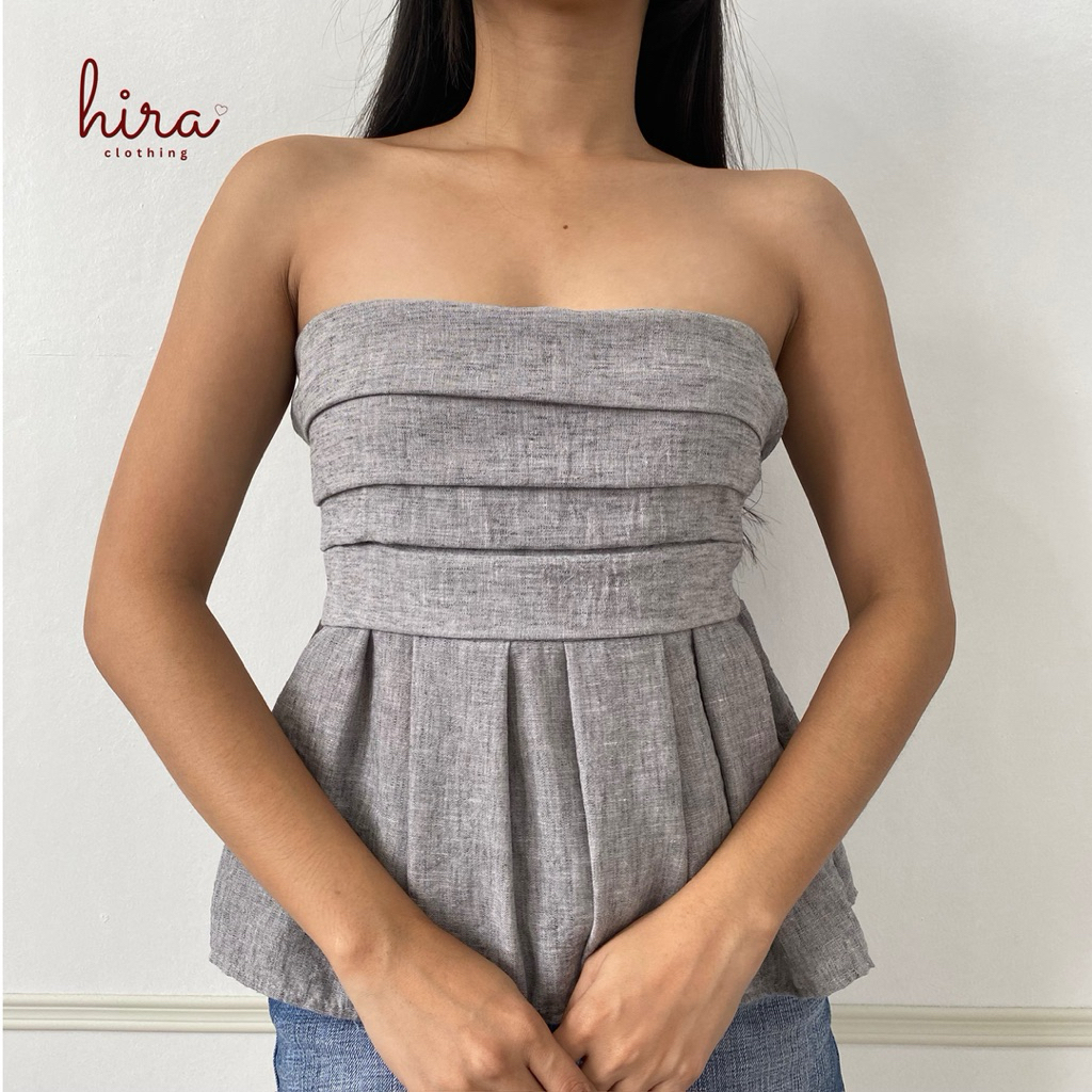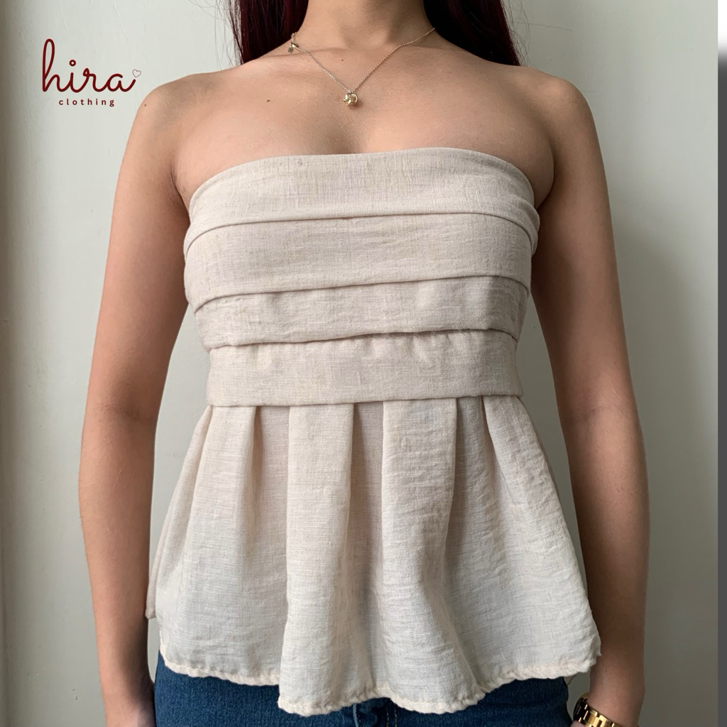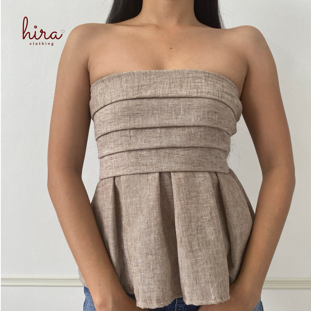 Hira · Lira Linen Peplum Tube | Strapless Bustier Linen Casual Top for Women