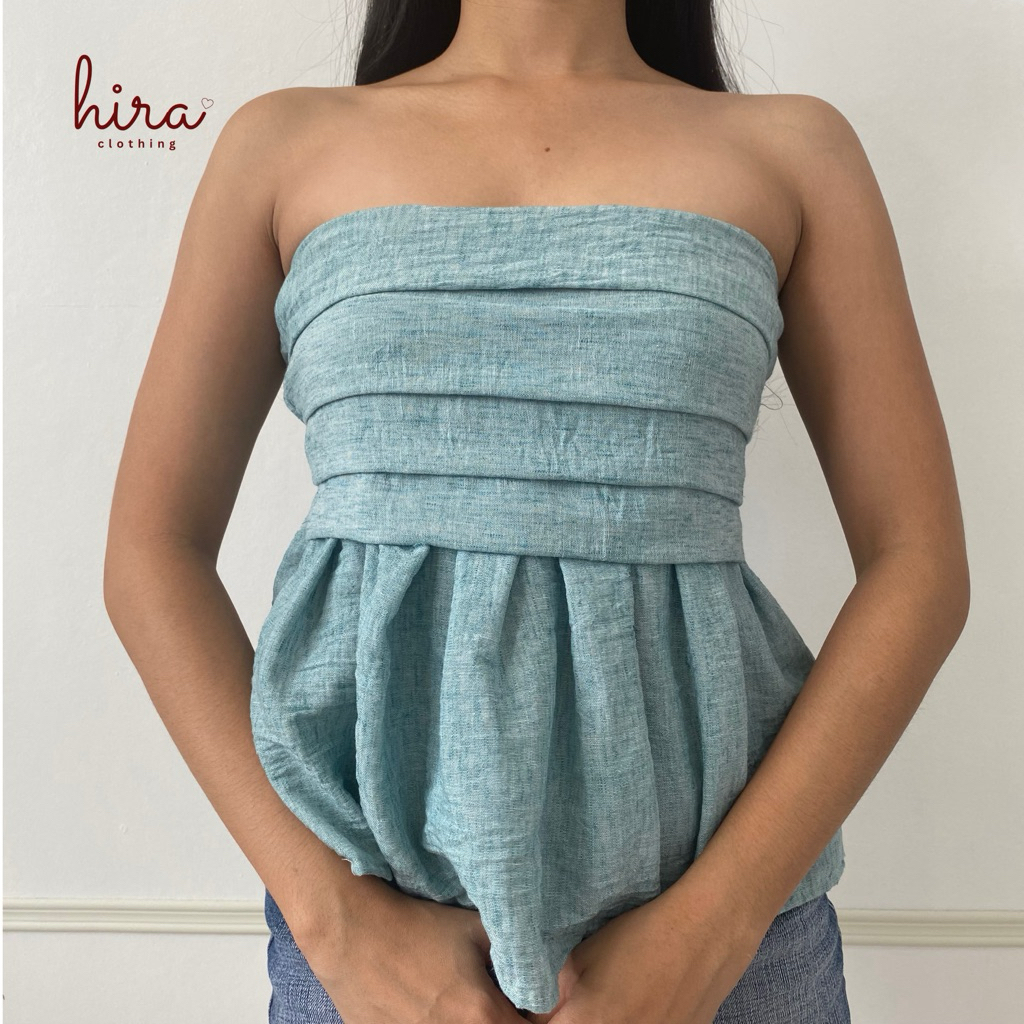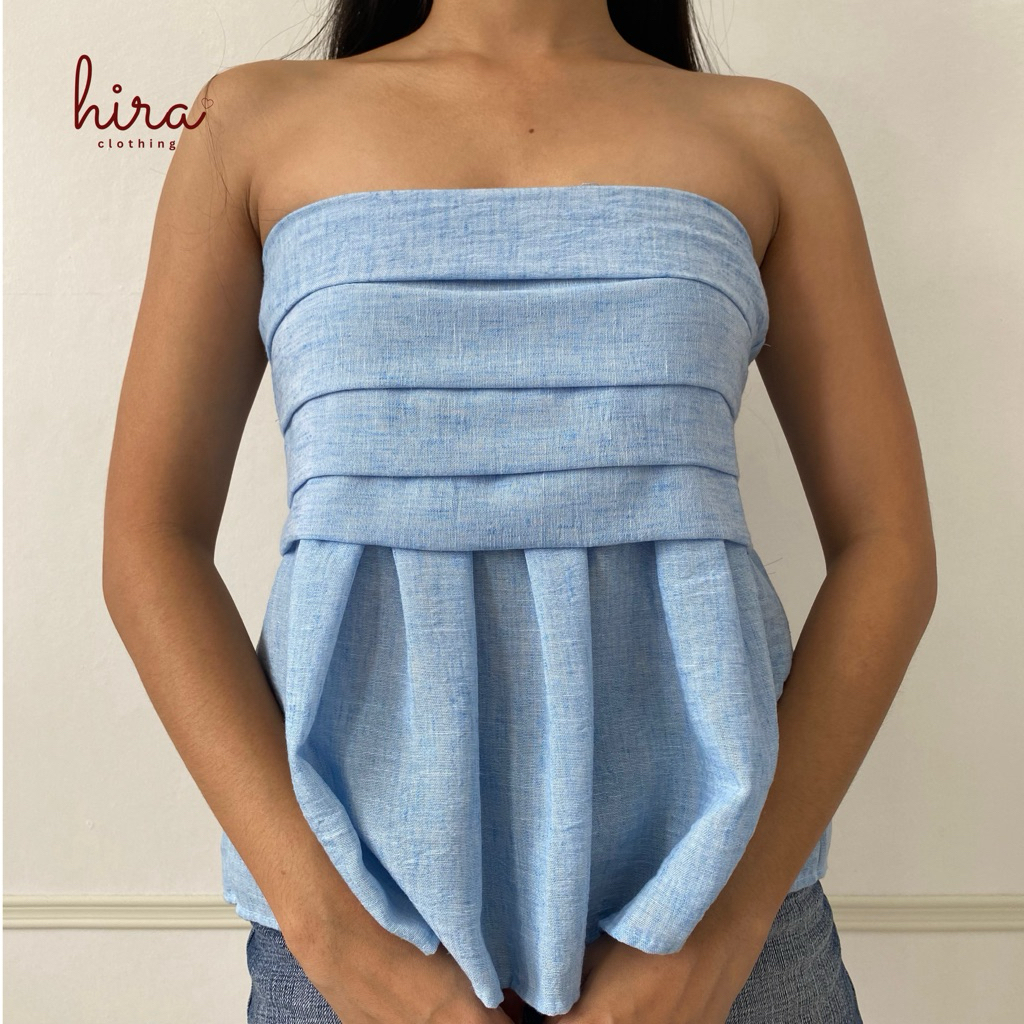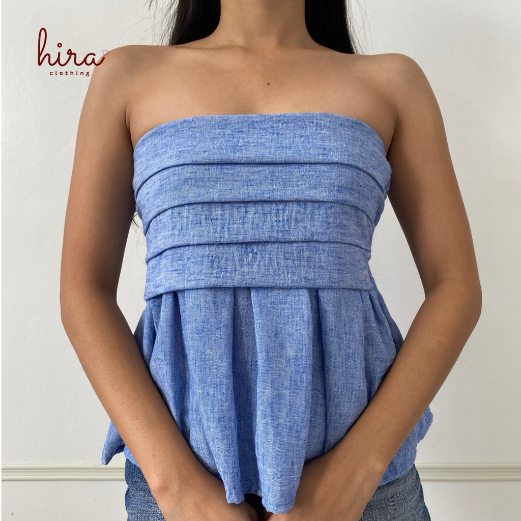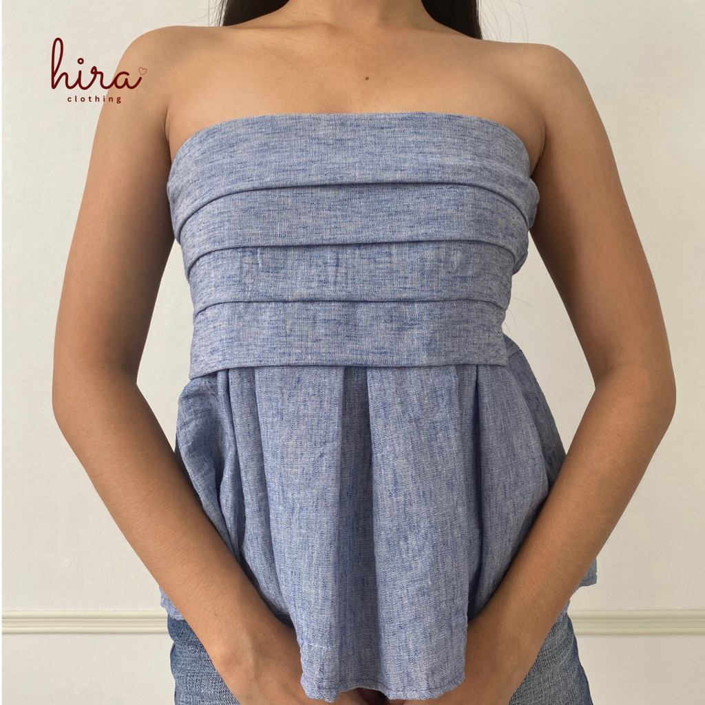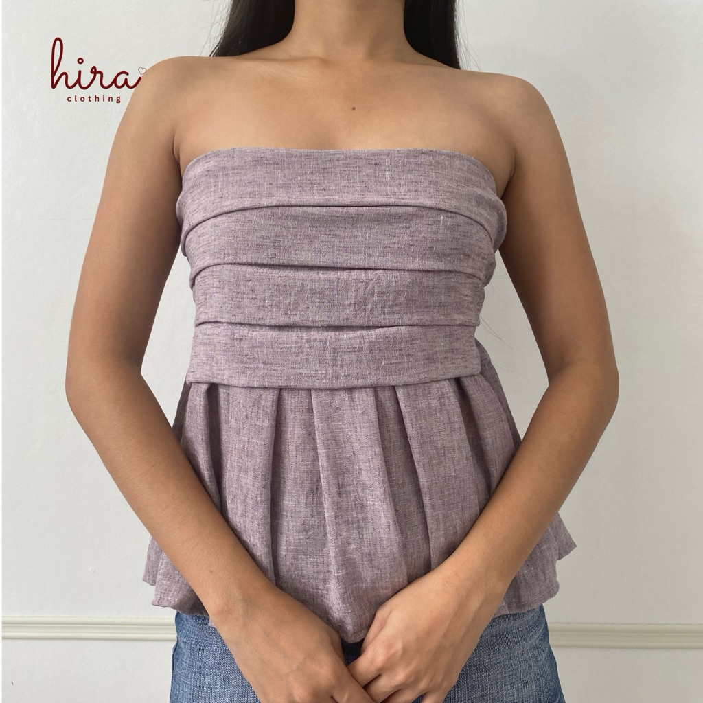 Hira · Lira Linen Peplum Tube | Strapless Bustier Linen Casual Top for Women