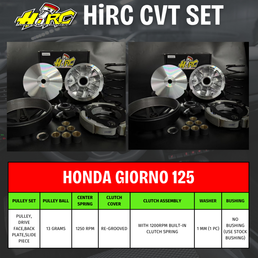 Hirc CVT SET Complete Set for HONDA GIORNO 125 (Degree: 14)-NO BUSHING