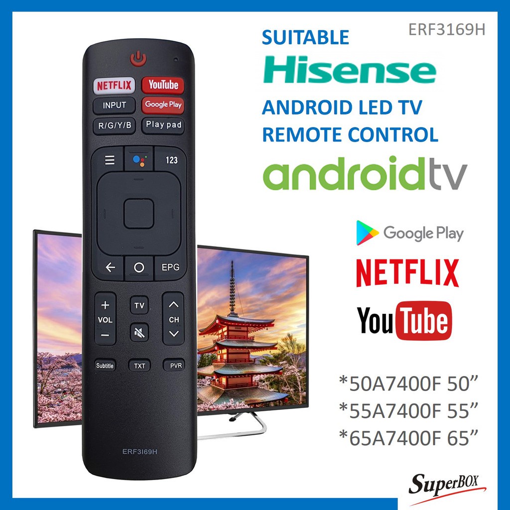 Hisense Flat Panel LED LCD Android Smart TV Remote Control YouTube Netflix Google Player (ERF3I69H)