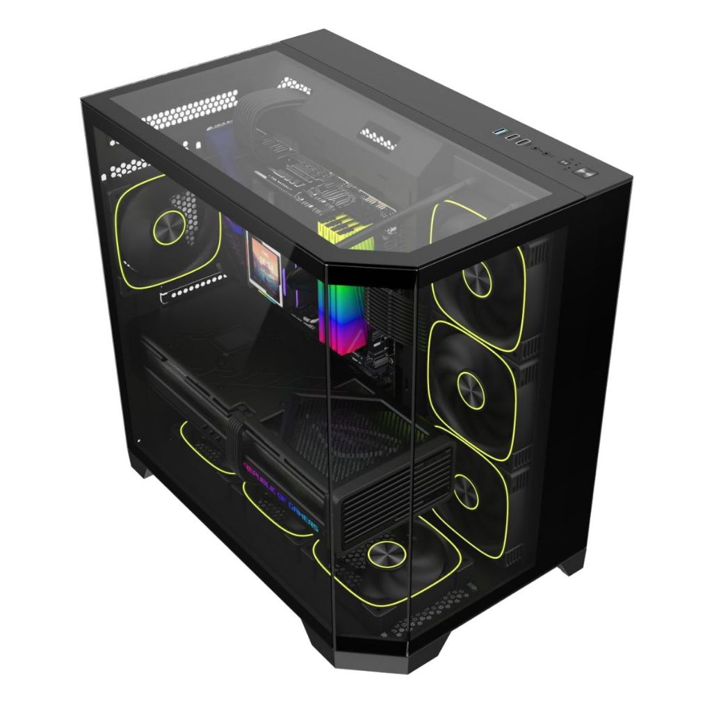 HiteqPC | ATX Dual-Chamber 4-Glass Panel PC Case (Back-Connect Compatible) - Coolman Zentra Luxe