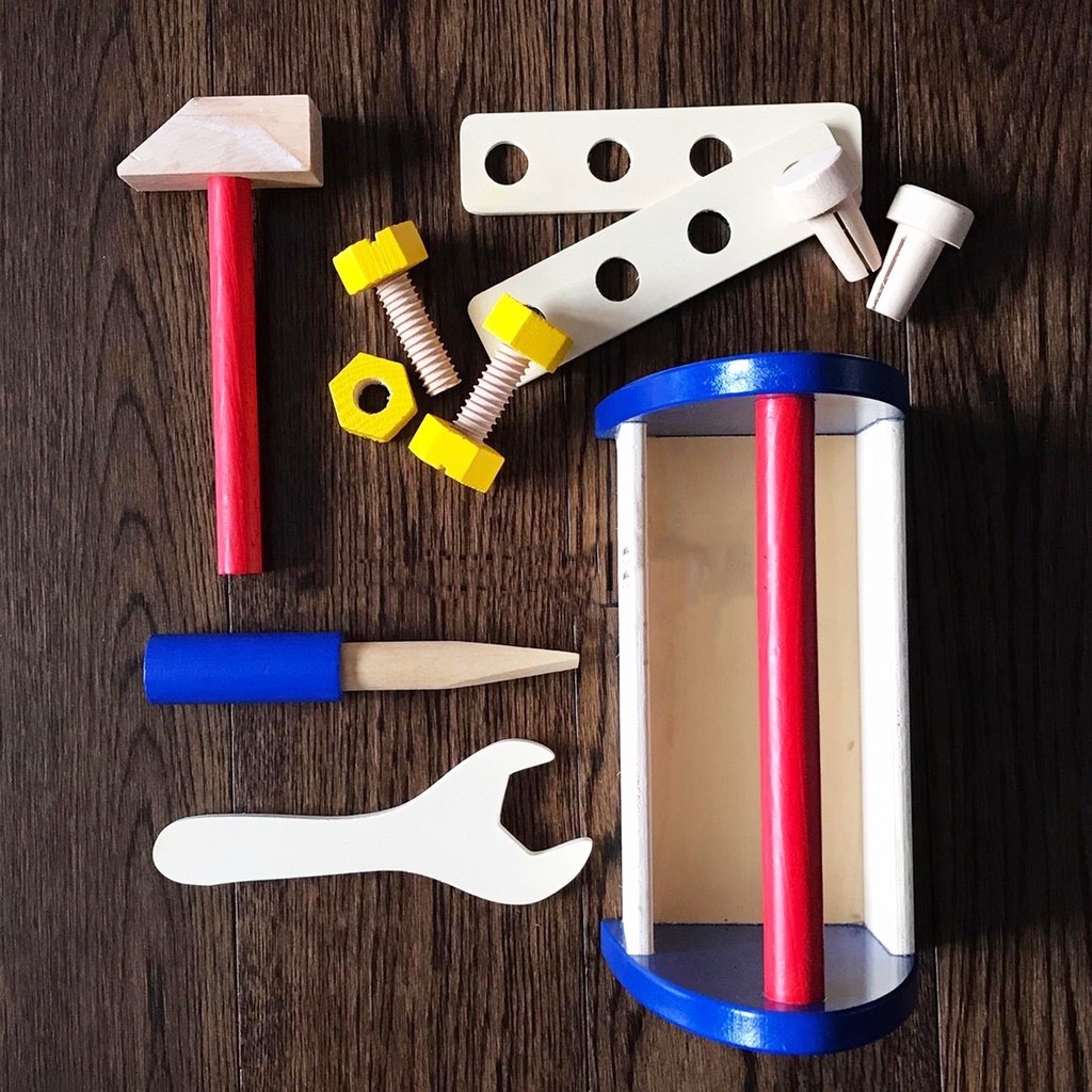 Hntob 14pcs Wooden Toolbox Kit Disassembly Tool Box Early Education Simulation Repair Puzzle Toys