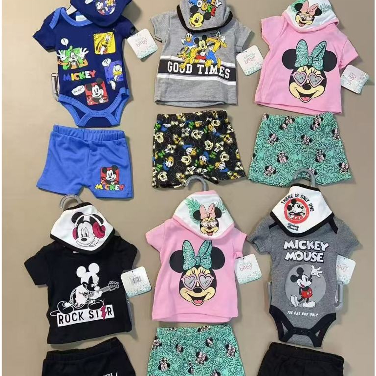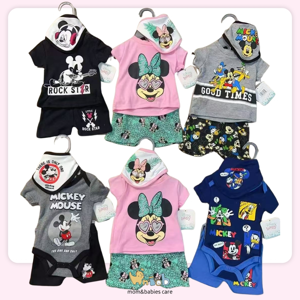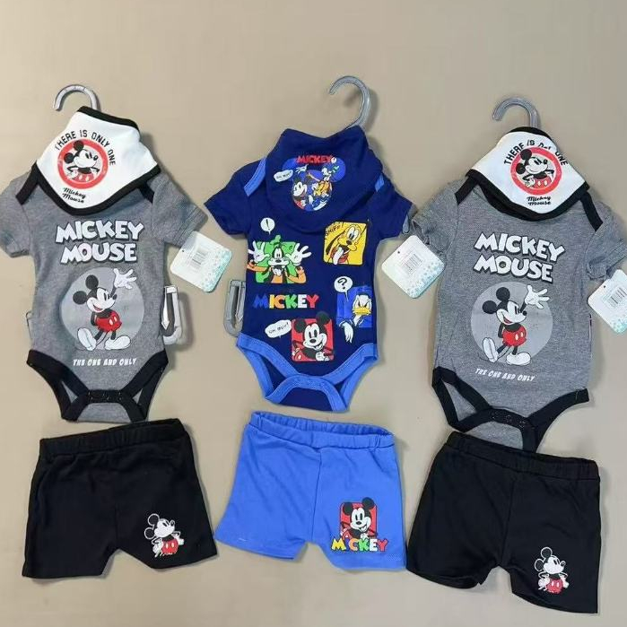 Hntob 3Pcs/Set Bodysuits Onesies Short Shirt Set Baby Newborn Infant Onesie-Choose Design 3 in 1