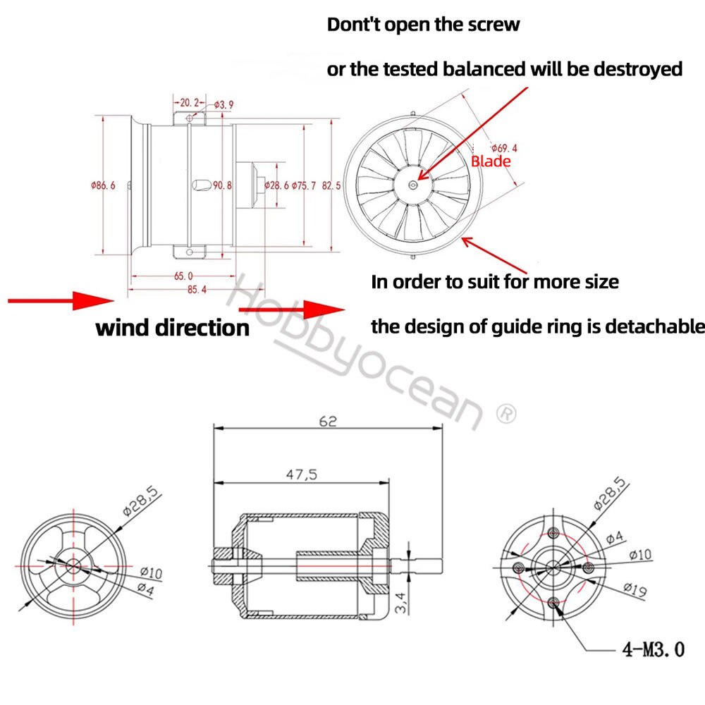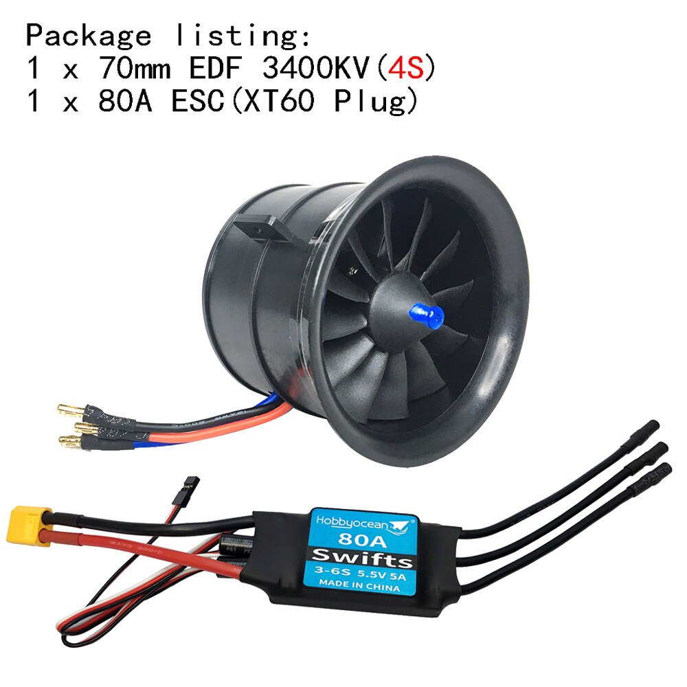 Hobbyocean EDF 70mm 12blades 4S 3300KV 6S 2300KV About 2200G Thrust for Airplane RC Model EDF Plane