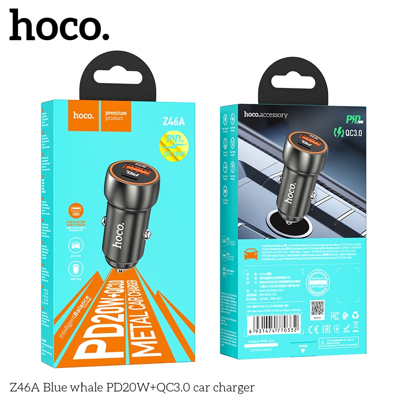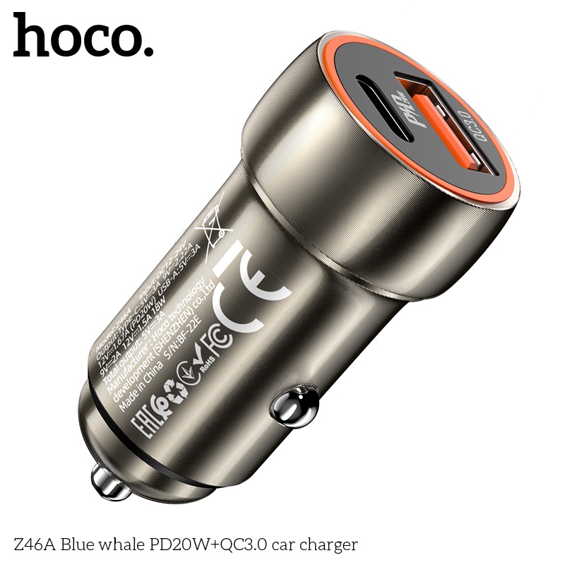 Hoco. Z46a PD 20W USB Car Charger Qc3.0 Fcp 3A Type C For Mobile Phone