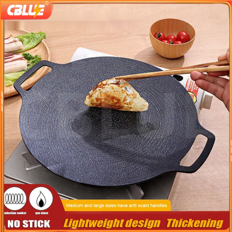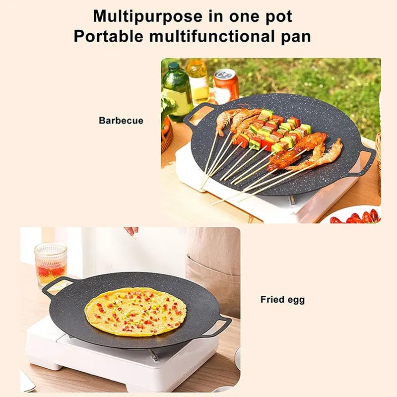 CBLUE Grill Pan Korean Round Non-Stick Barbecue Plate Frying Pan Outdoor Camping Maifan Stone
