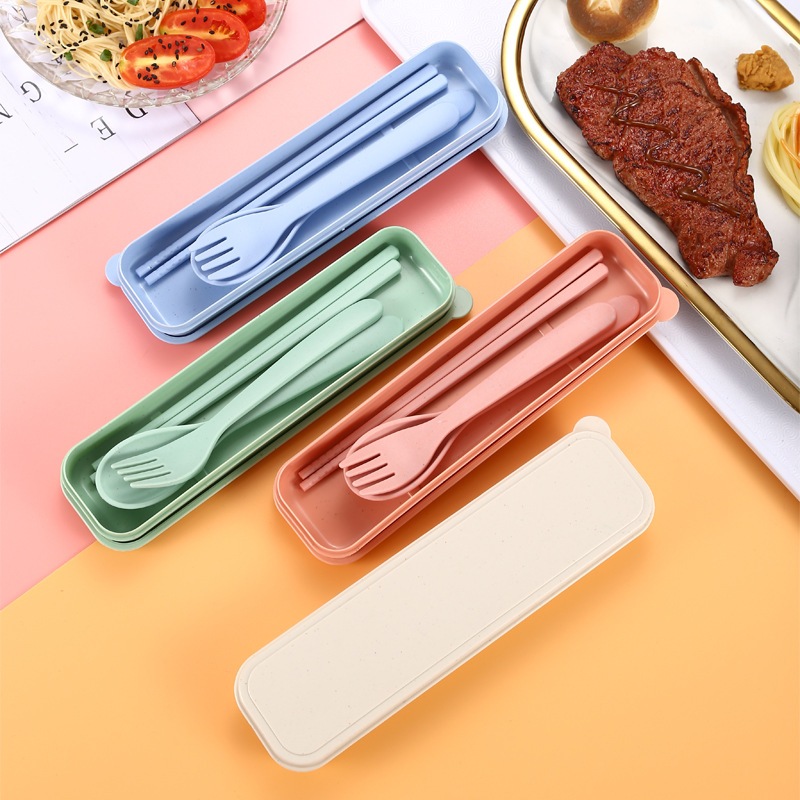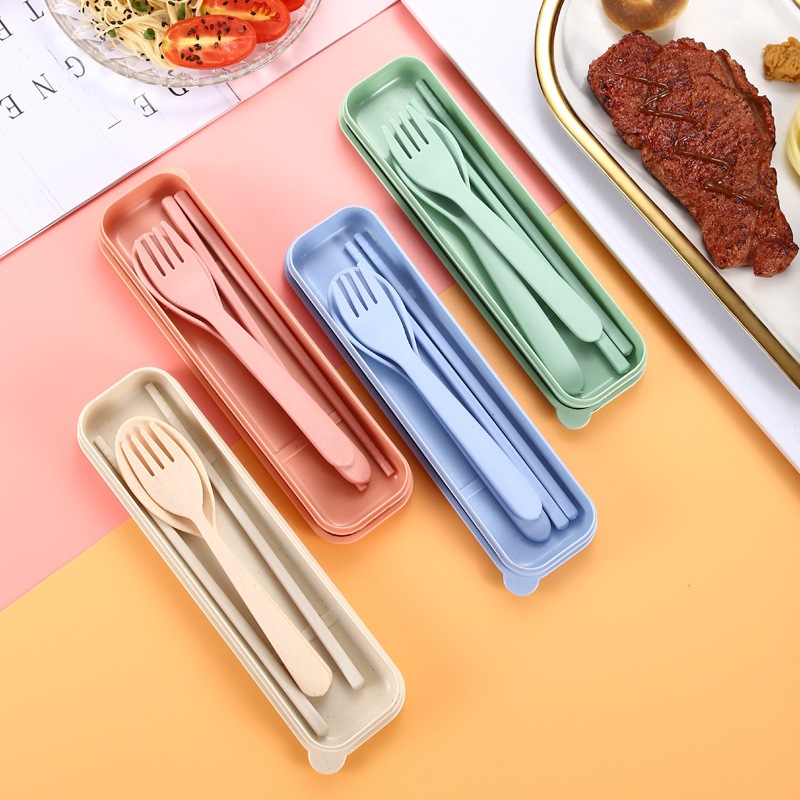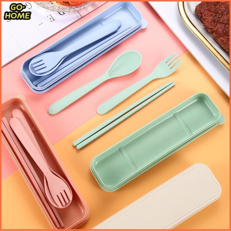 【GO⚡】3PCS Spoon Fork Hopstick Set With Organizer Box Outdoor Travel Picnic Portable Tableware Set