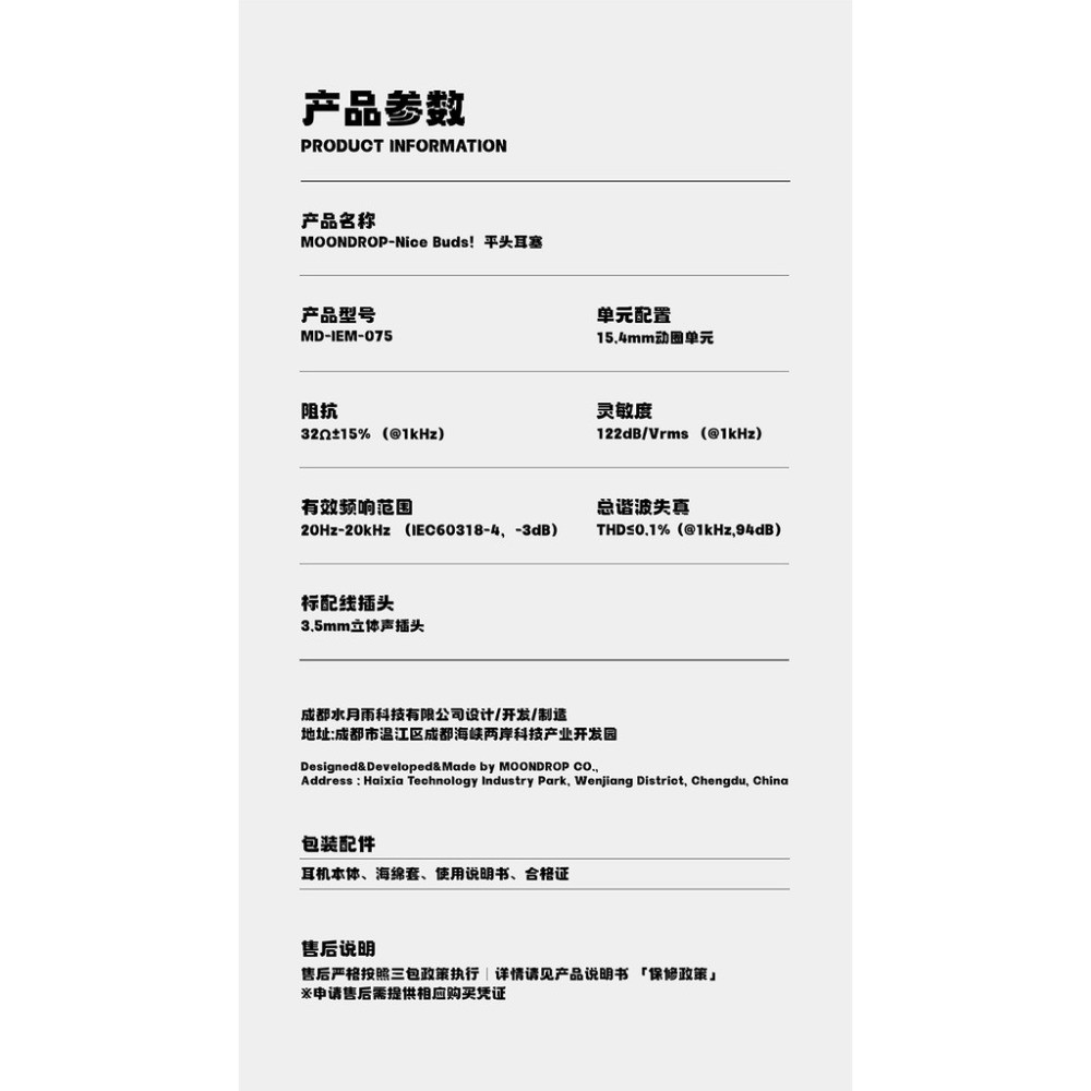 MOONDROP Nice Buds High-Fidelity Audiophile Wired Gaming Headphones (Flat Headphones) NiceBuds for MX500 New Design
