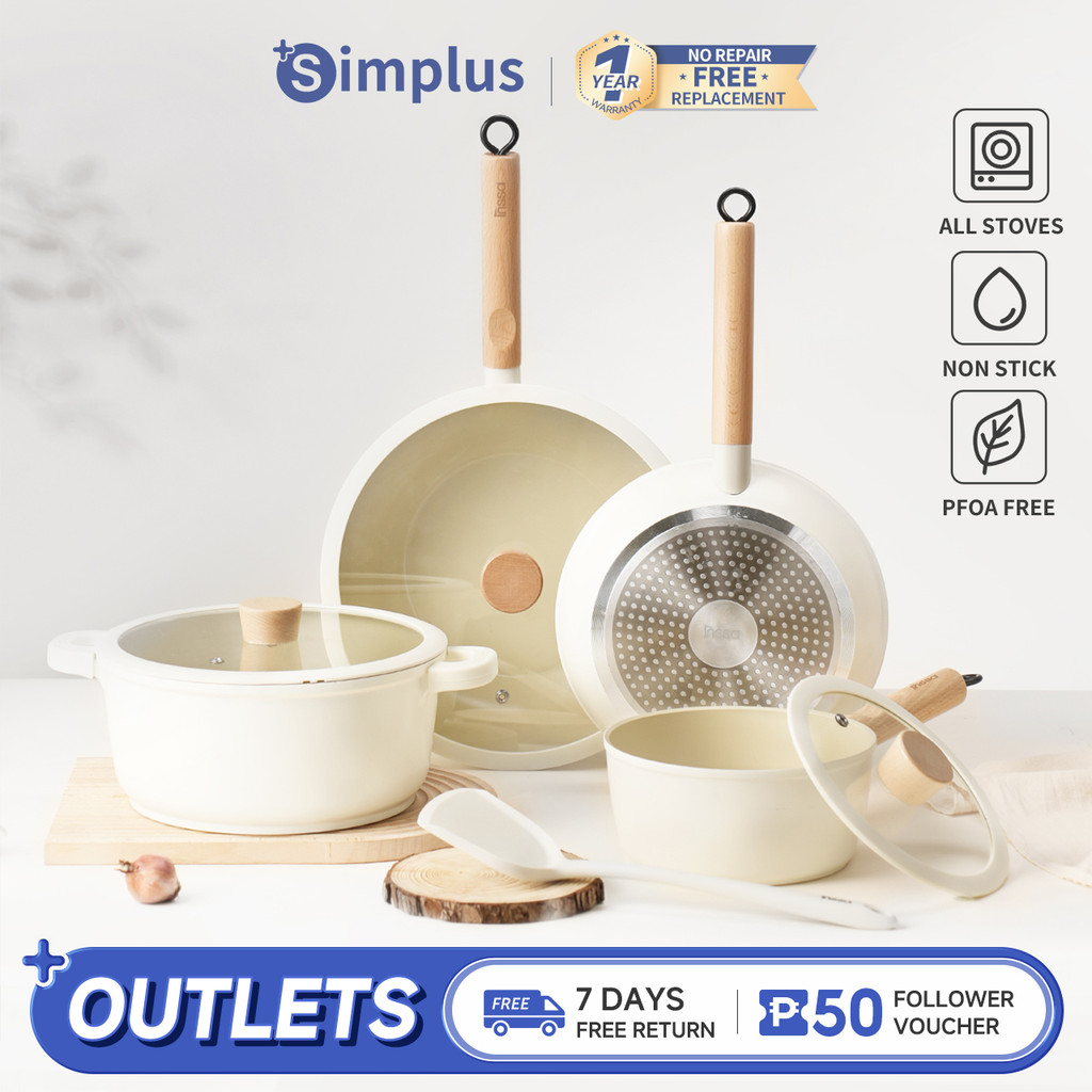 Simplus Cookware Set Non-Stick Ceramic Saucepan Wok Fry Pan Stockpot PTFE & PFOA Free Suitable for All Stoves