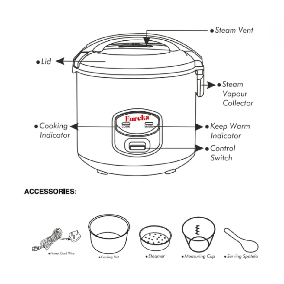 EUREKA RICE COOKER ERCJ 1.8L WITH STEAMER COLOR/DESIGN VARIATION DEPENDS ON STOCK AVAILABILITY