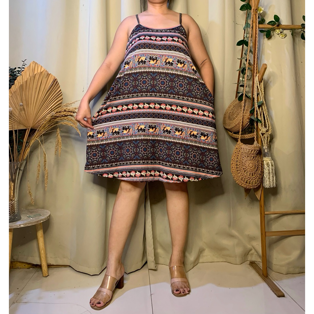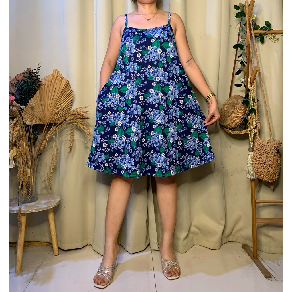XL TO 2XL LUISA DUSTER SPAGHETTI STRAP MATERNITY DRESS WITH 2 SIDE POCKET