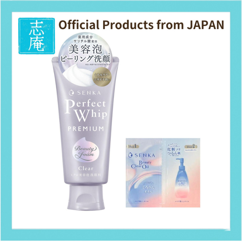 ★【Official products from Japan】SENKA Premium Perfect Whip Clear 120g + Bonus Beauty Foam Peeling Transparency Pores Dead Skin Care Dullness Care Medicinal Cleansing Foam for Ladies and Men
