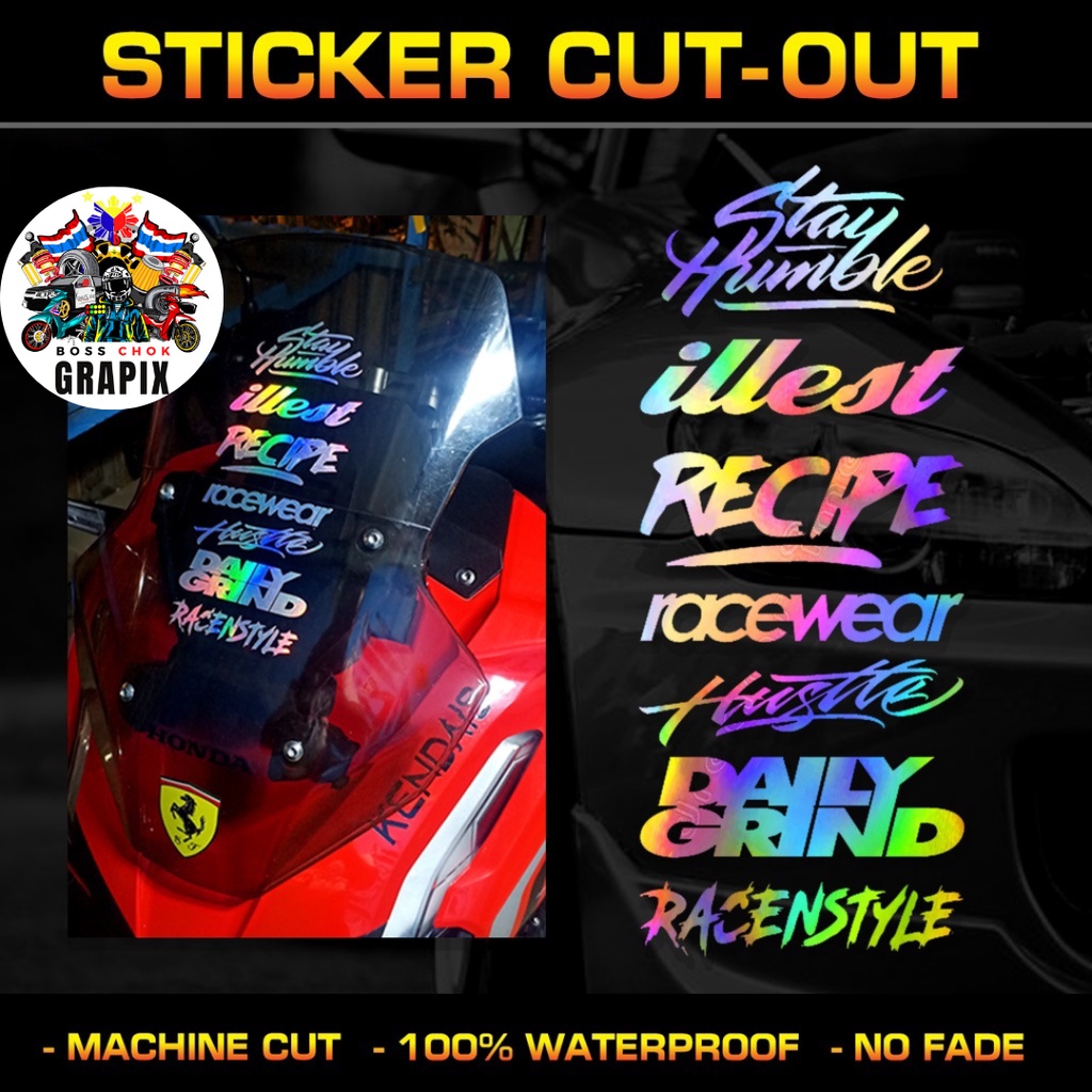 Hologram Stickers Cut-out Set (7 pcs) - STAY HUMBLE ILLEST RECIPE DAILY GRIND (Free Random Sticker)