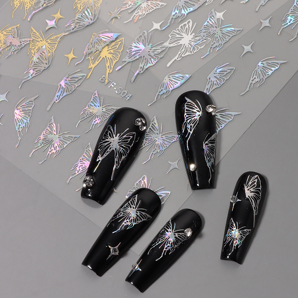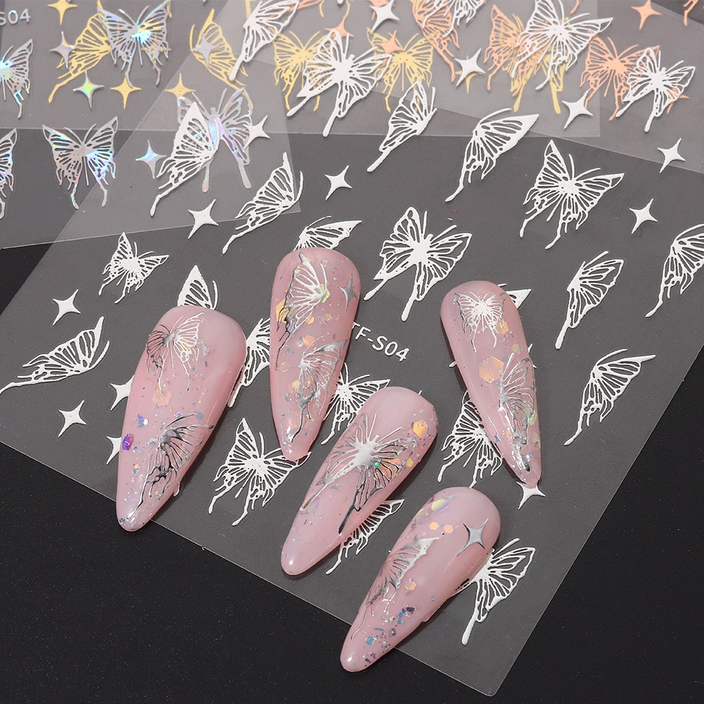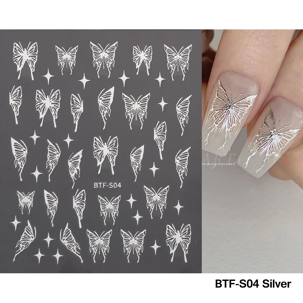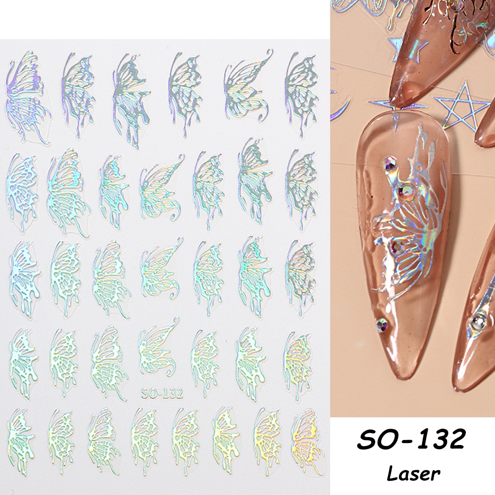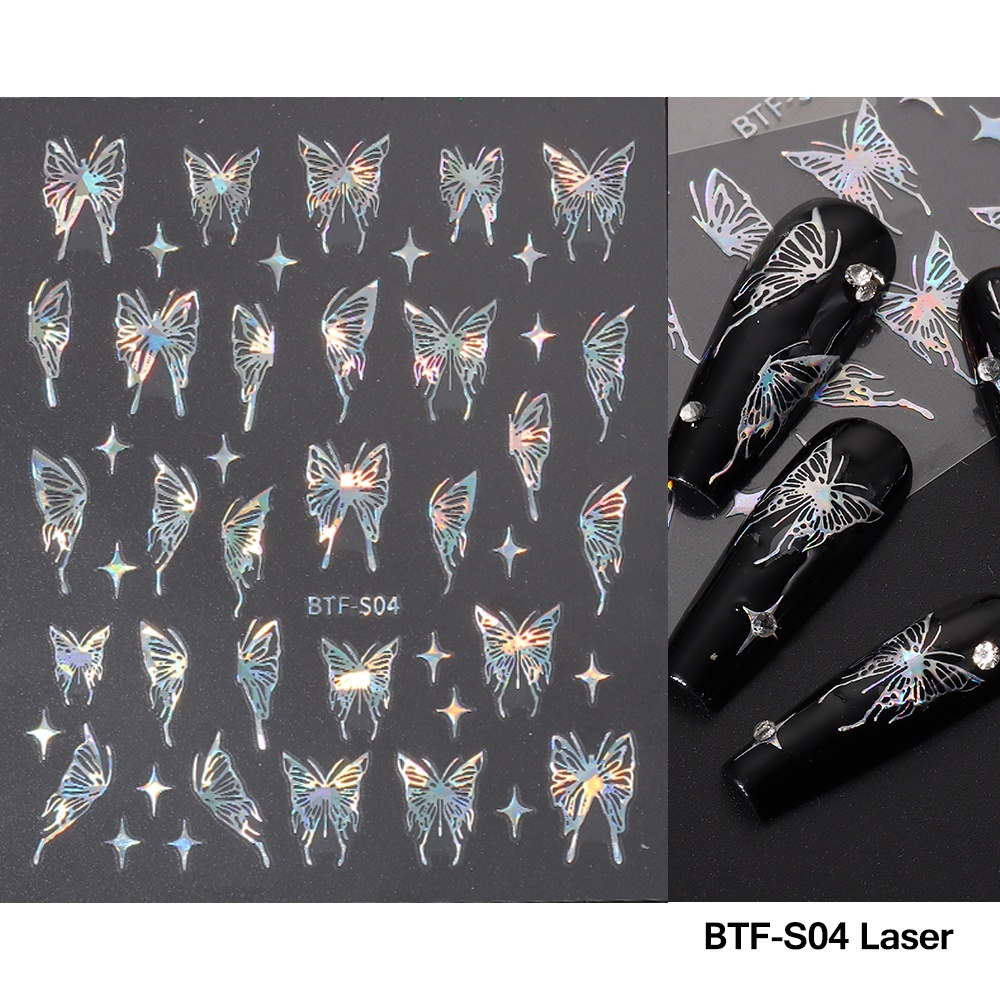 Holographic Butterfly Nail Stickers Silver Chrome Effect Laser Stars Sliders For Nails Adhesive Decal Flowers Manicure