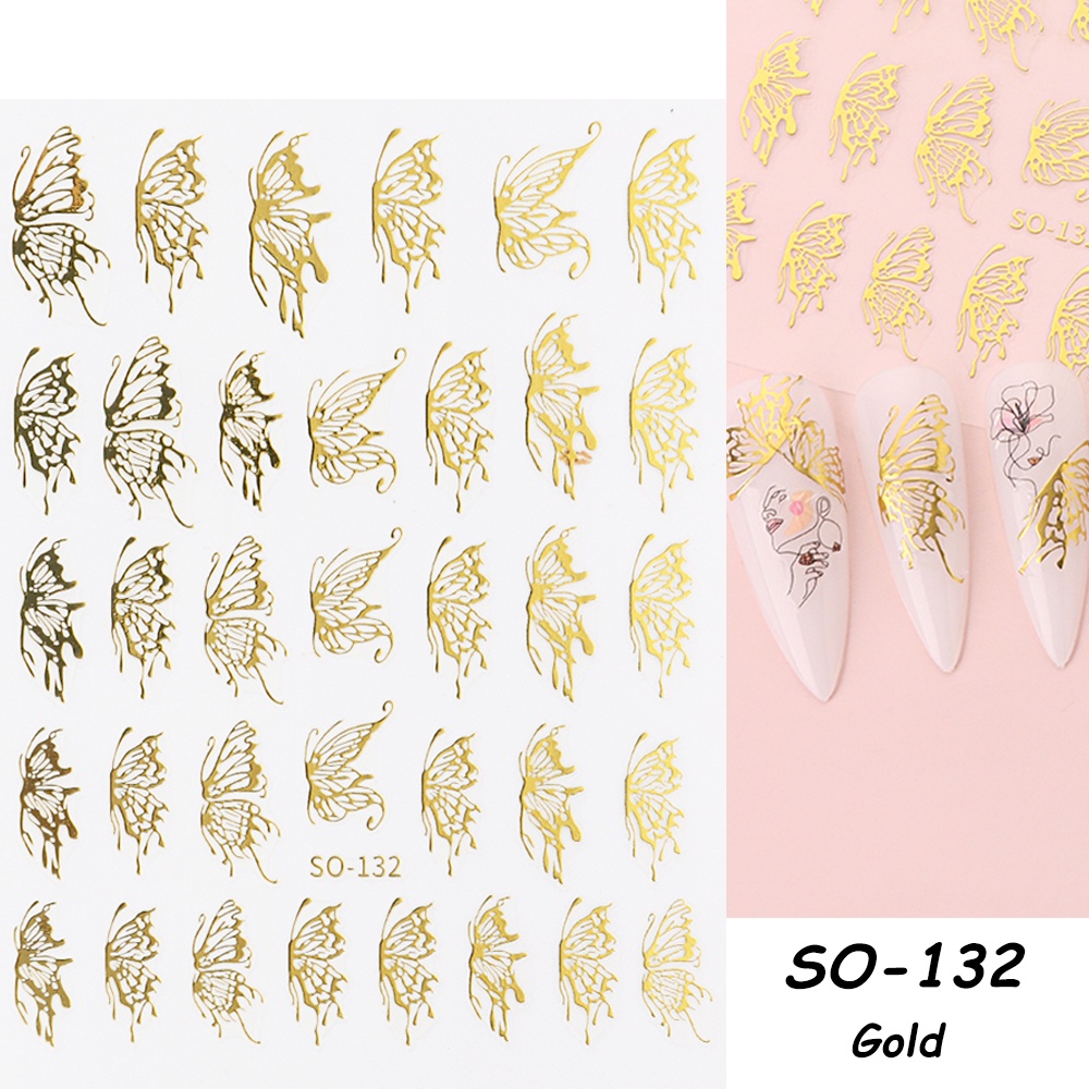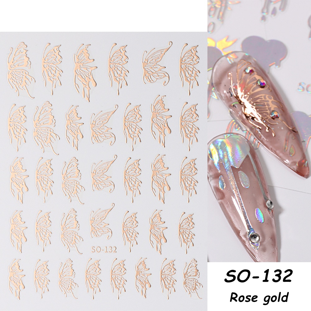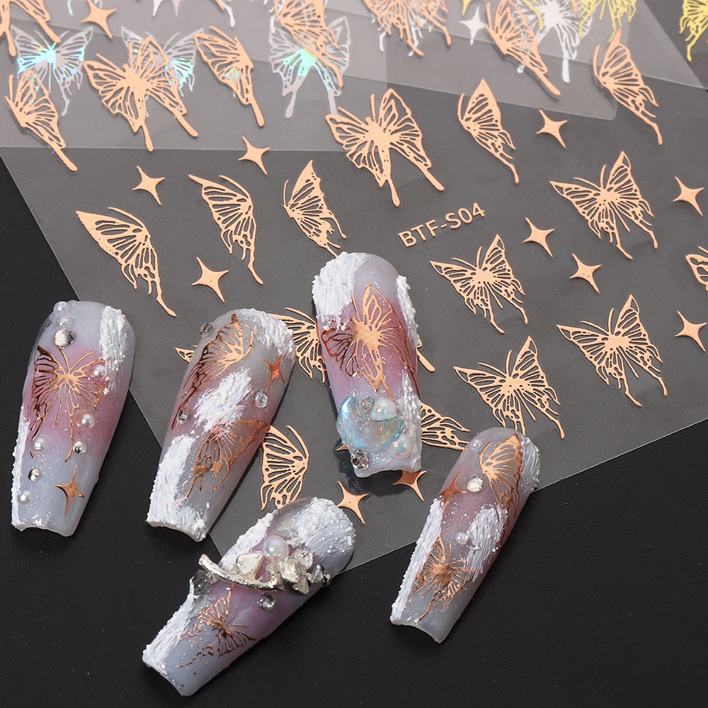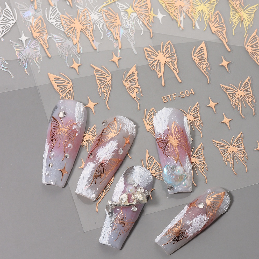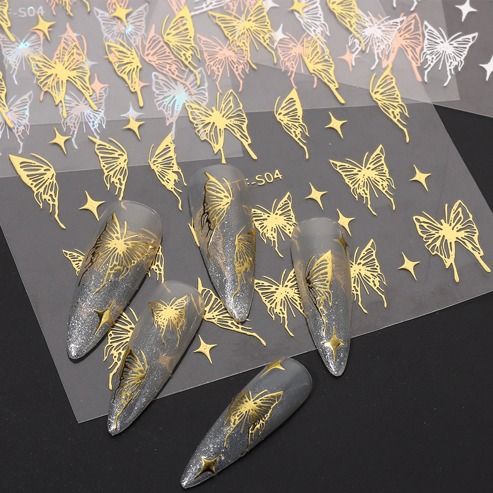 Holographic Butterfly Nail Stickers Silver Chrome Effect Laser Stars Sliders For Nails Adhesive Decal Flowers Manicure