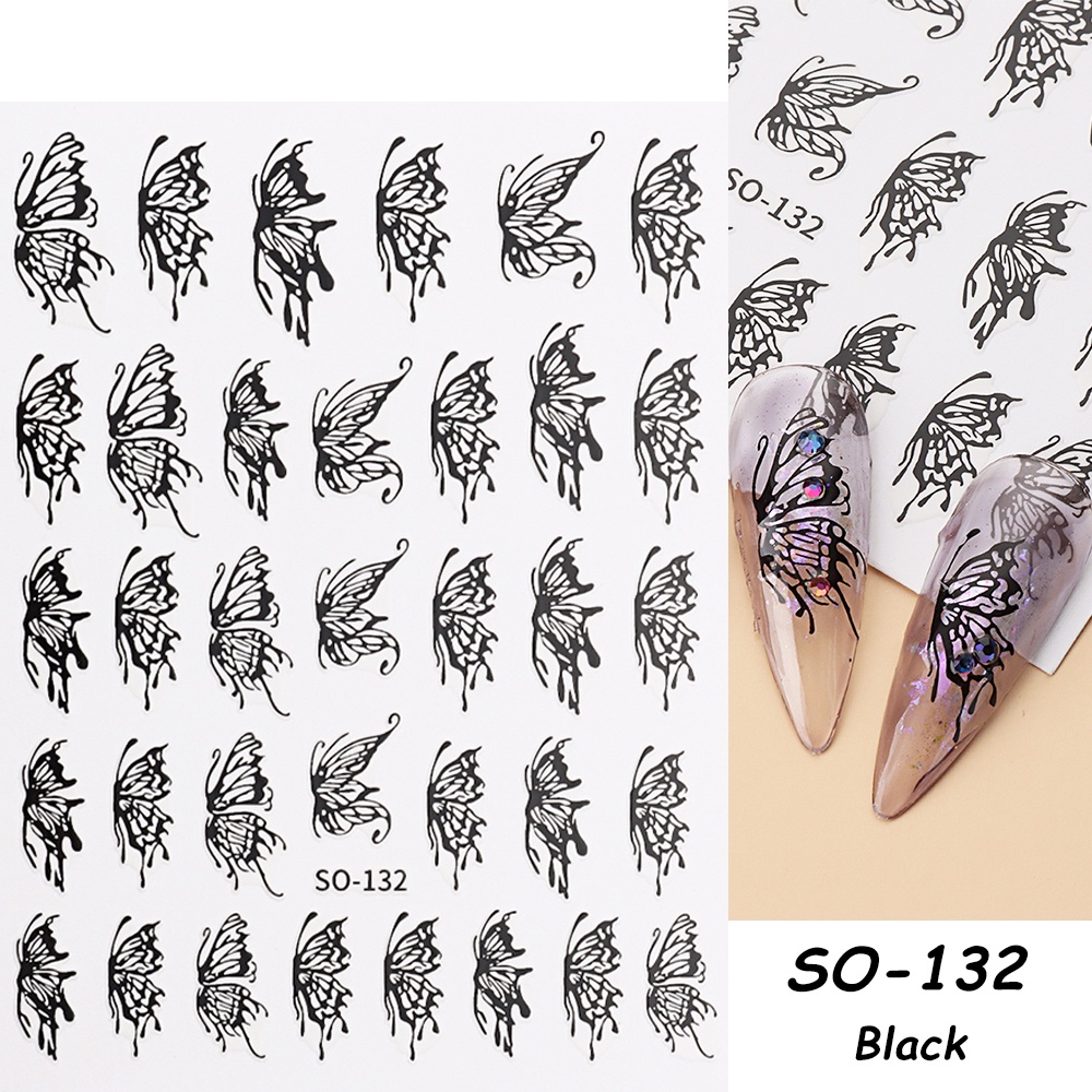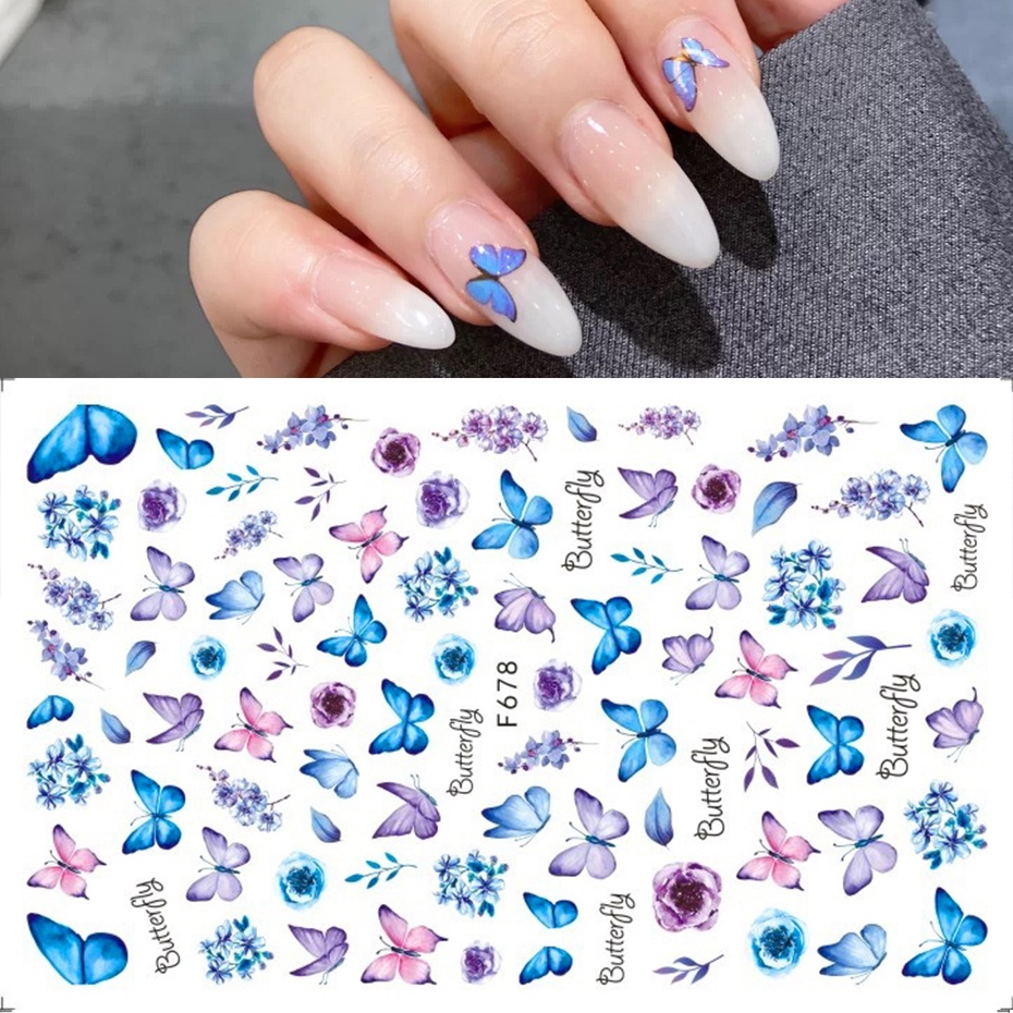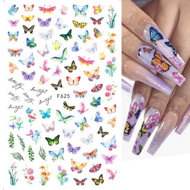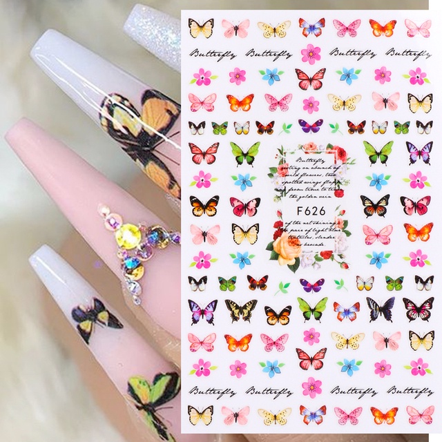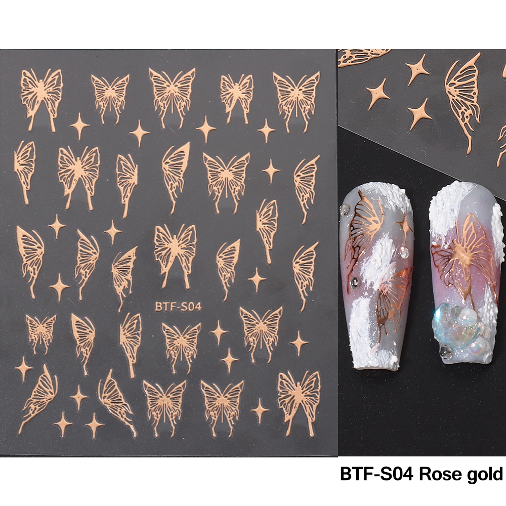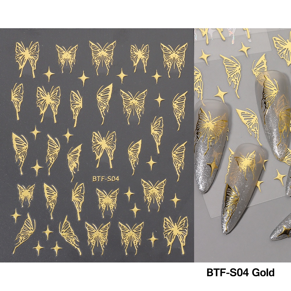 Holographic Butterfly Nail Stickers Silver Chrome Effect Laser Stars Sliders For Nails Adhesive Decal Flowers Manicure