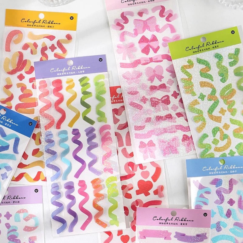 Holographic Laser Stickers, INS Style Colorful Ribbon Series