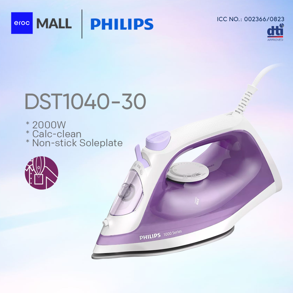 Philips DST1040/30 Non-Stick Soleplate Calc Clean Garment Care Steam Iron 2000w - 250ml
