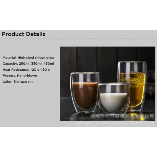 Activebae Double Wall Mug Heat-Resistant Glass Water Cup Hot&Cold Beverages Coffee Tea Home& Office