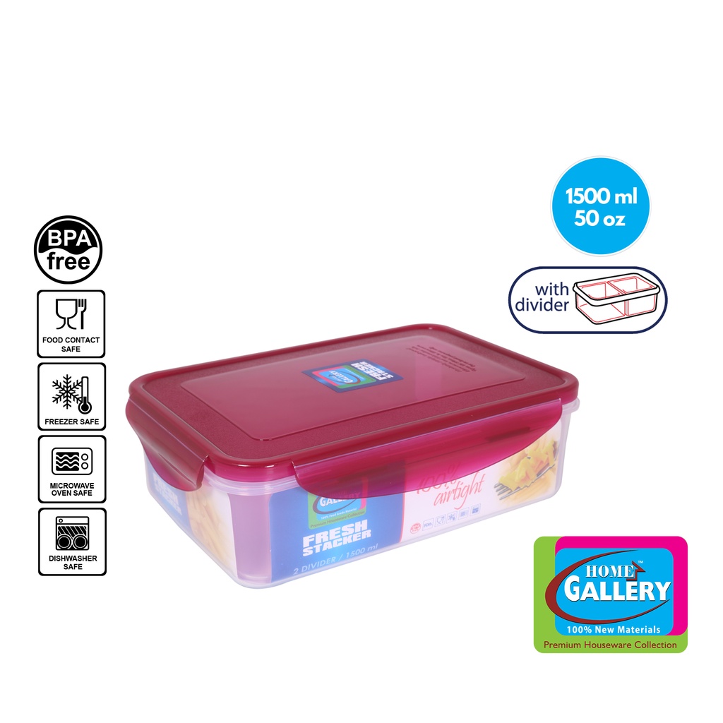 Home Gallery Fresh Stacker Rectangular Food Keeper w/ 2 Divider 1500ml/50oz | BPA Free FSR1500D2A