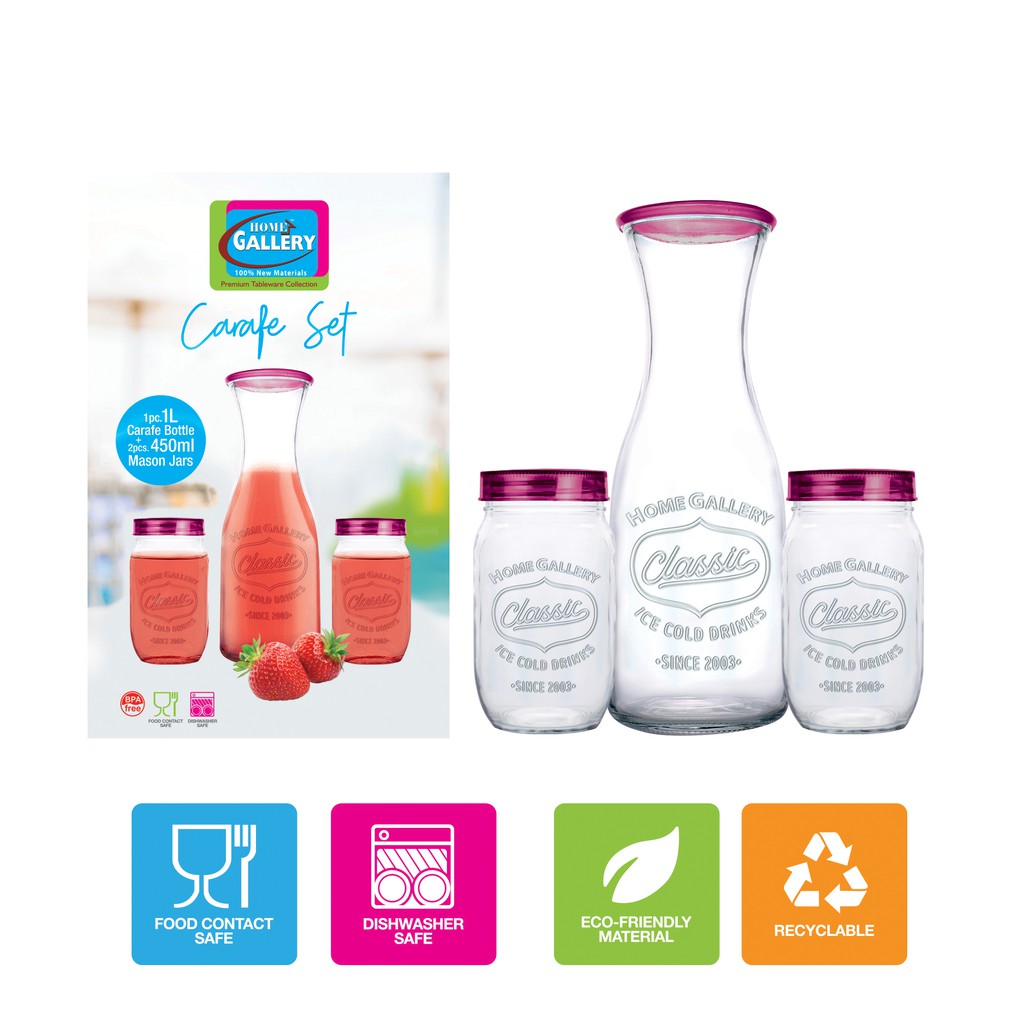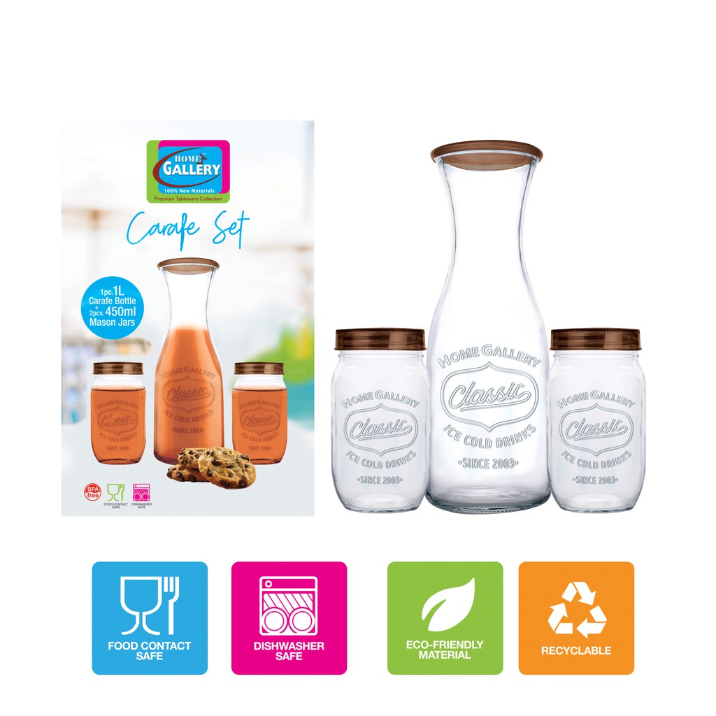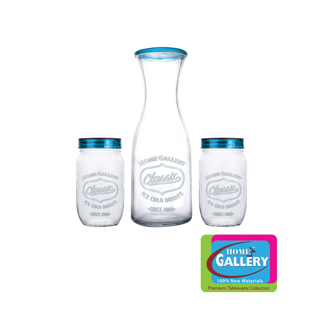 Home Gallery Glass Drinking Carafe Set (Classic Ice Cold Drink) 3pc | 100% Hygienic