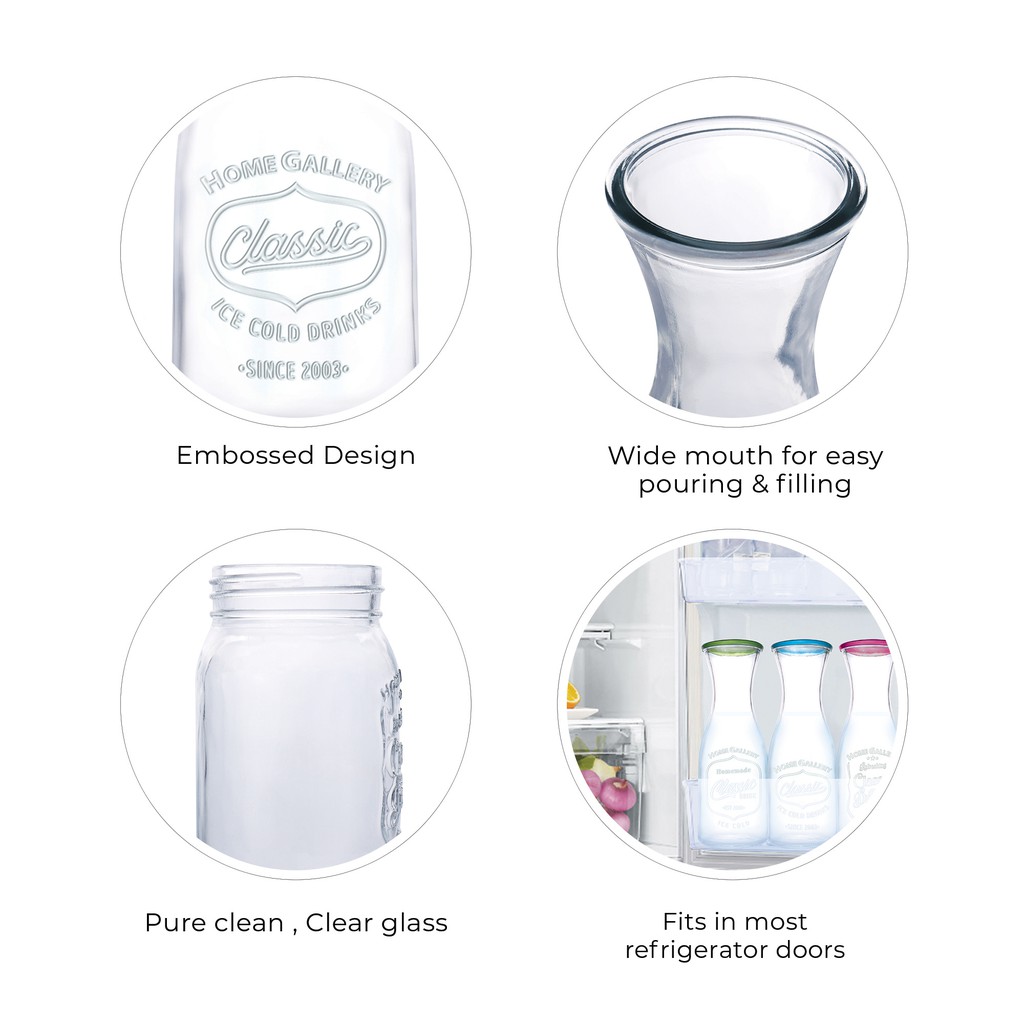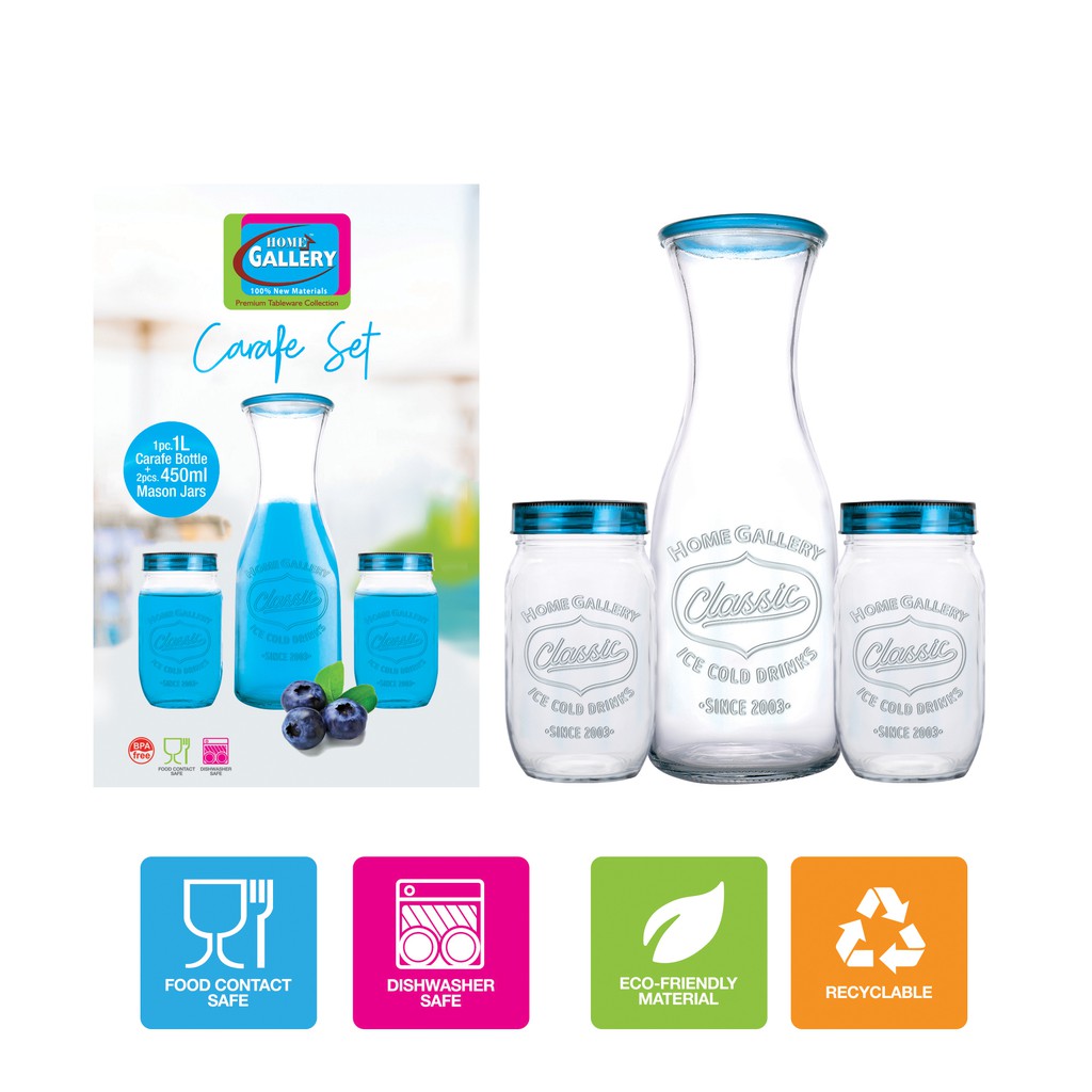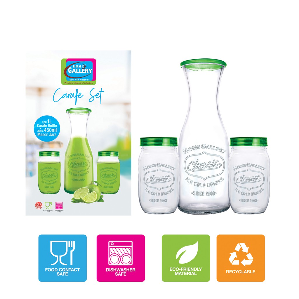 Home Gallery Glass Drinking Carafe Set (Classic Ice Cold Drink) 3pc | 100% Hygienic